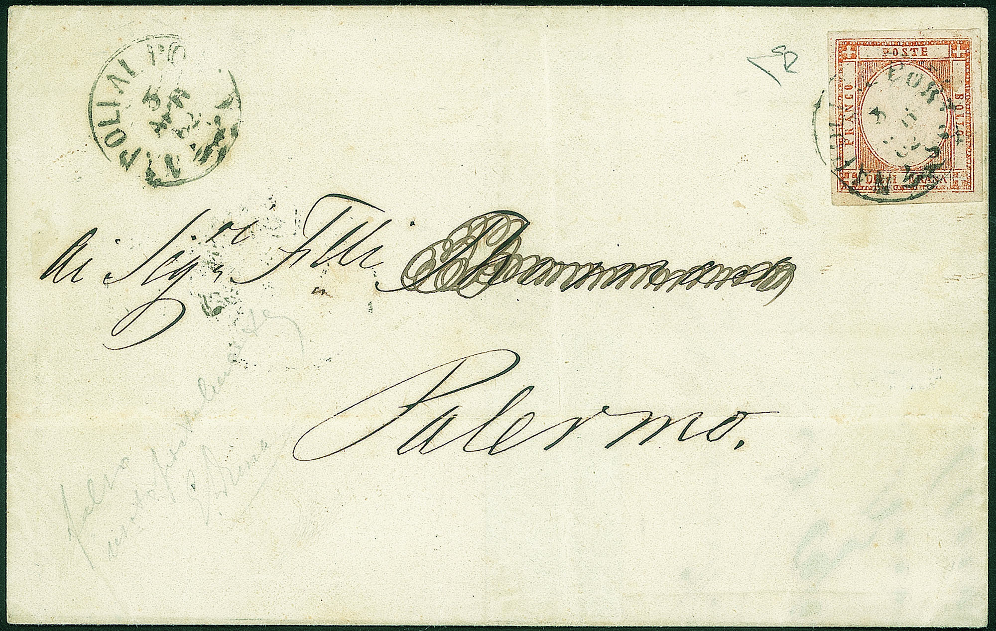 Antichi Stati Italiani - Napoli - Falso per posta del 10 grana II tipo effige tipo C colore arancio (F8 cat.7000)