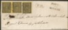 3 esemplari, di cui una coppia orizzontale con interspazio di gruppo e un singolo annullati con griglietta e lineare su tre righe (p. 12) di pregio cert. Bottacchi