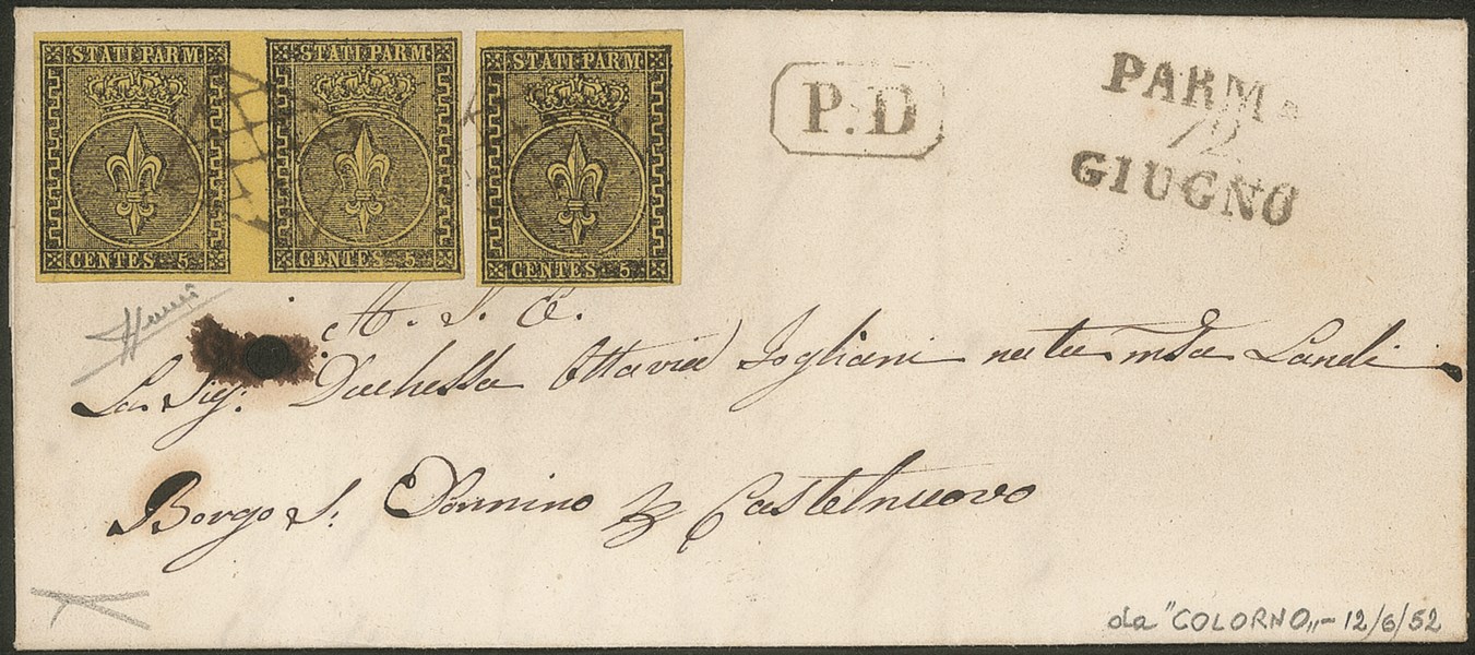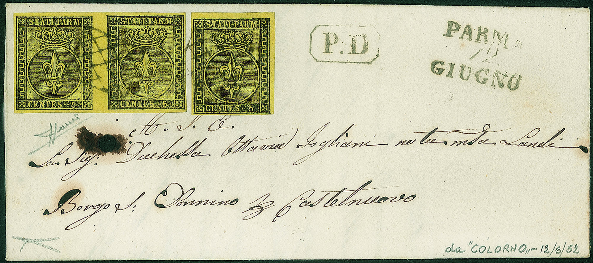 Antichi Stati Italiani - Parma - Lettera da Parma per Borgo San Donnino 12 giugno 1852 con 5 cent. (Sass. 1)