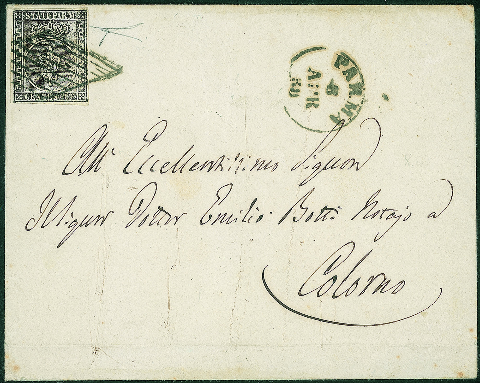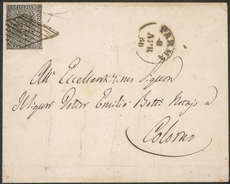 Antichi Stati Italiani - Parma - Lettera da Parma a Colorno il 8 aprile 1859 con 10 cent. bianco (Sass. 2)