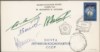 Cosmogramma del volo Soyuz T-2 (5.6.-9.6.1980), busta ufficiale posta dei cosmonauti Soyuz T-2 con i vari annulli e timbri di bordo: annullo sovietico CC*CP posta spaziale 08.06.80 Soyuz-Salyut-6, bollo pentagonale Salyut-6 e bollo circolare CC*CP 4° Equipaggio residente commemorativo dei giochi olimpici di Mosca 1980 - firme autografe dei cosmonauti V.Aksenov e Y.Malychev (Soyuz T-2), L.Popov e V.Ryumin (Soyuz-35) - ottima qualità - Bolaffi + cert. Kniga