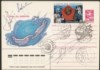 Cosmogramma del volo sovietico-siriano Soyuz TM-3 - bollo pentagonale nero di bordo Mir, annullo ufficiale Siria 22.07.87, lancio, e sovietico-siriano CC*CP 24.07.87, commemorativo dell'aggancio Mir e del carattere internazionale del volo sovietico-siriano - firme autografe di Y.Romanenko e A.Laveikin (Soyuz TM-2 a bordo della stazione), A.Viktorenko, A.Alexandrov e M.Faris, Siria (Soyuz TM-3) - ottima qualità - cert. Kniga