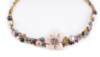 Semi-rigid choker necklace in 18kt yellow gold with colored stones of various cuts, pearls, and diamonds, embellished with a central shell flower Signed Santagostino Gr 59.7
