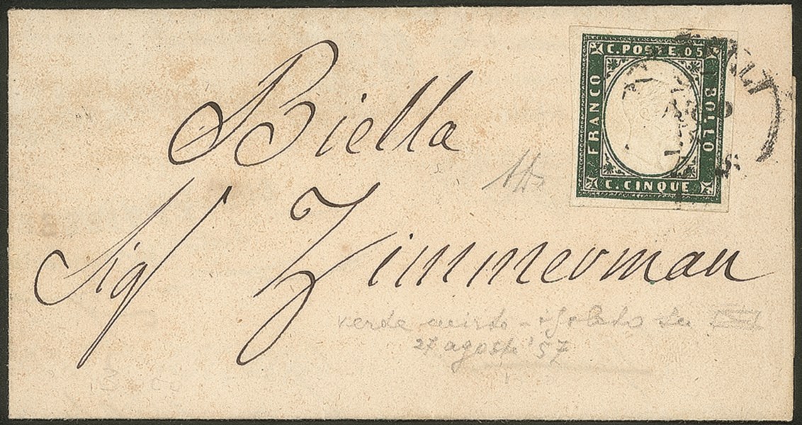 Isolato da Vercelli a Biella del 27.8.57 - uso nello stesso distretto postale - qualità lusso - A. Diena