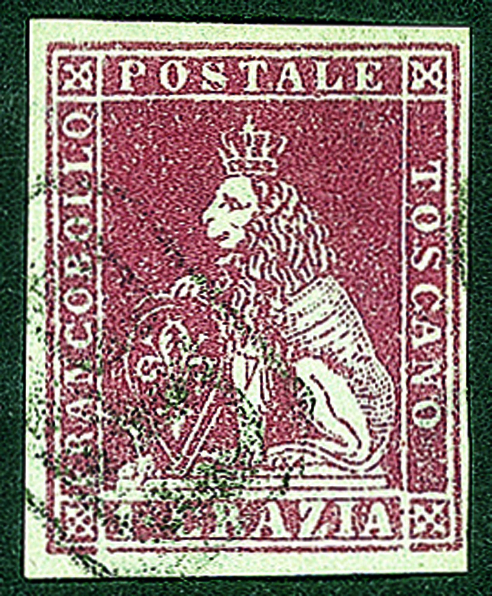 Antichi Stati Italiani - Toscana - Difetti di cliché - 1851 - Splendido esemplare bordo di foglio del 1 crazia carminio chiaro (4)