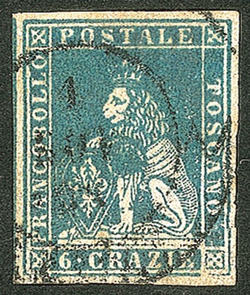 Antichi Stati Italiani - Toscana - Difetti di cliché - 1857 - Bellissimo esemplare del 4 crazie azzurro cupo (15b)