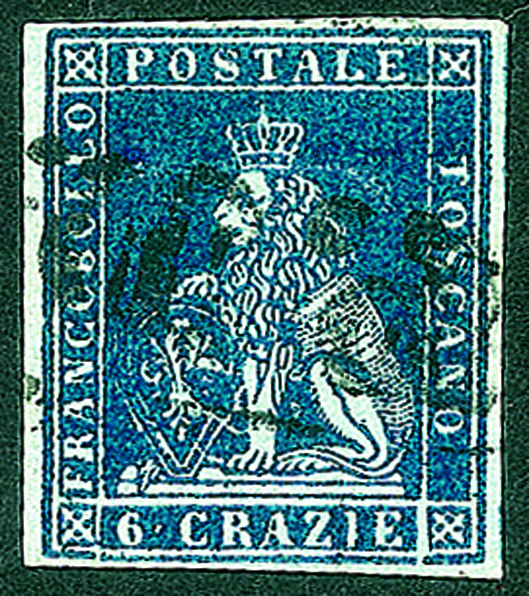 Antichi Stati Italiani - Toscana - Difetti di cliché - 1851 - Bellissimo esemplare del 6 crazie ardesia su grigio (7)