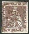 Antichi Stati Italiani - Toscana - Difetti di cliché - 1851 - Bellissimo esemplare con grandi margini del 9 crazie viola bruno