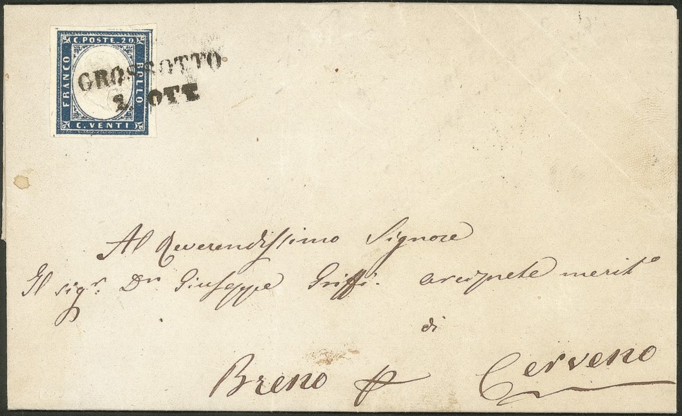 Lettera del 2.10.1859 per Cerveno affrancata con 20 cent IV di Sardegna (15B)