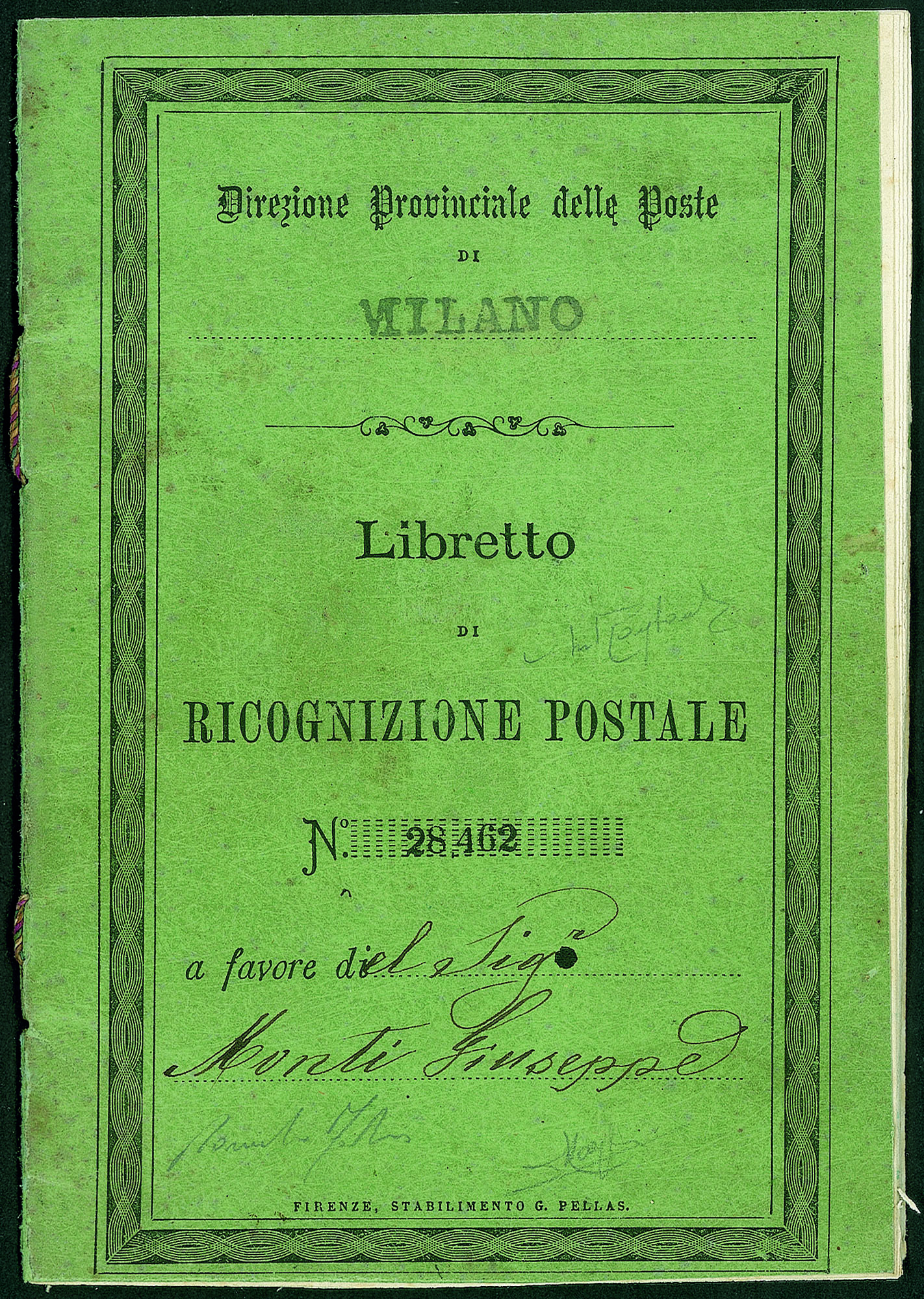 Regina Vittoria - Vittorio Emanuele III - Servizi - Libretto di ricognizione Postale completo delle 10 pagine con apposta su ciascuna il 10 cent (1)