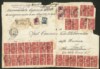 Italia - Repubblica - Grande frontespizio di raccomandata espresso con 28 esemplari del 100 lire Democratica (565) + complementari (555 + 561)