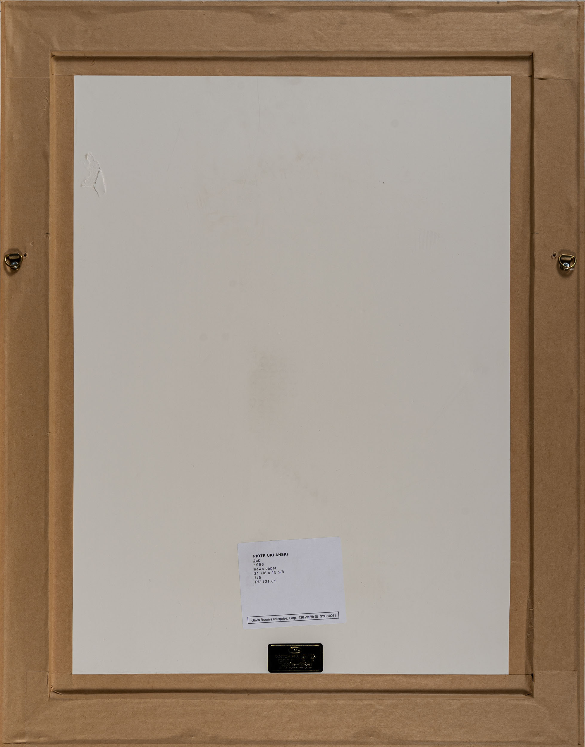 Gavin Brown's Enterprise, New York (etichetta al retro)