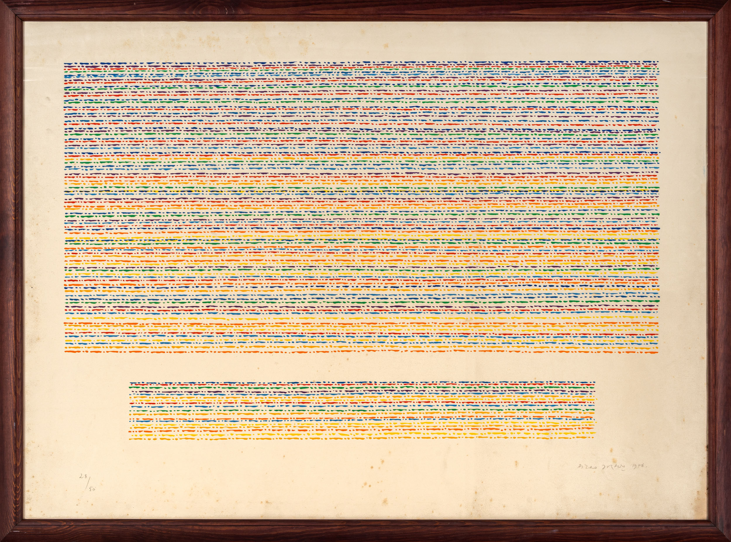 Firmata e datata a matita in basso a destra e numerata in basso a sinistra