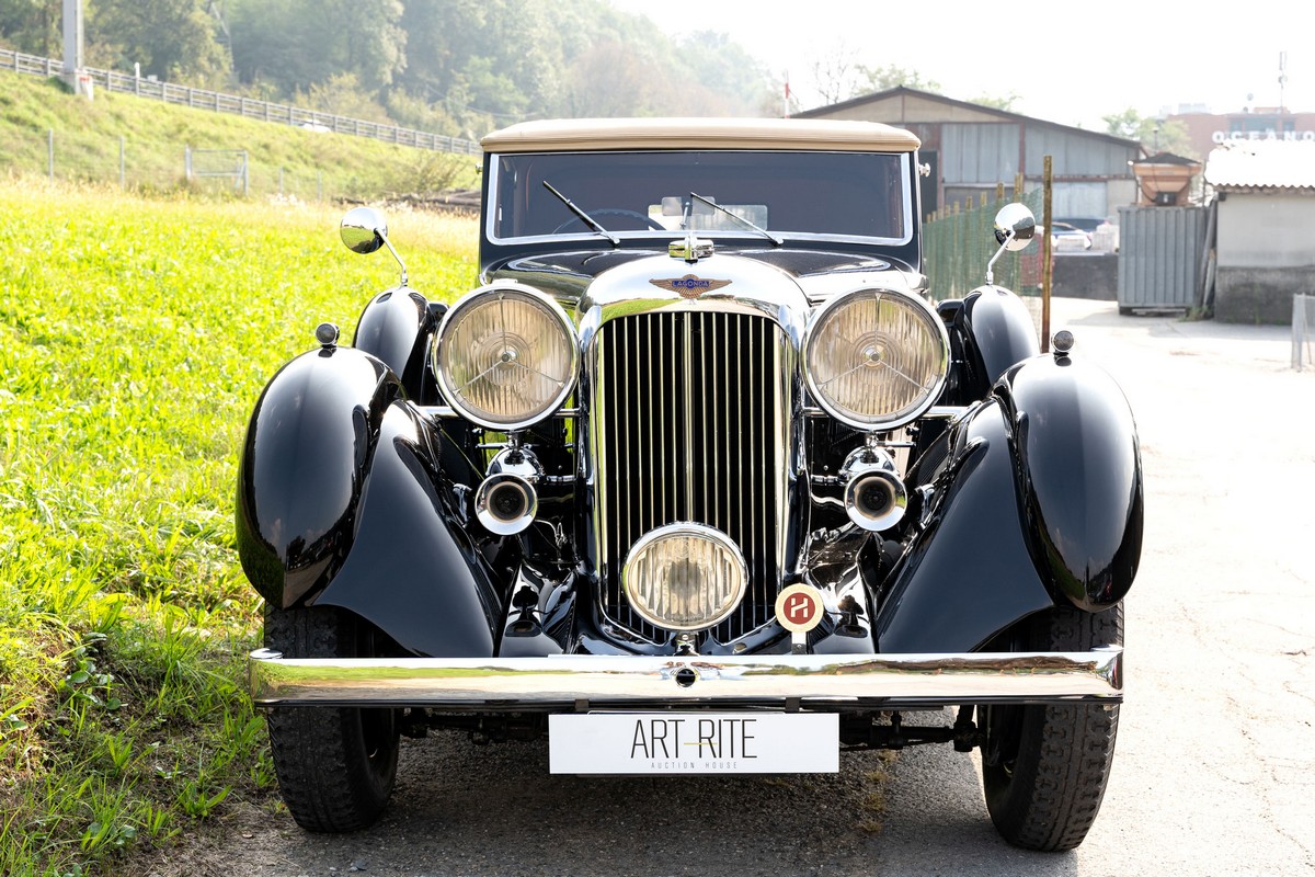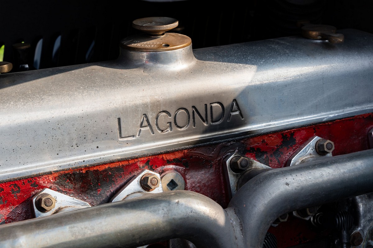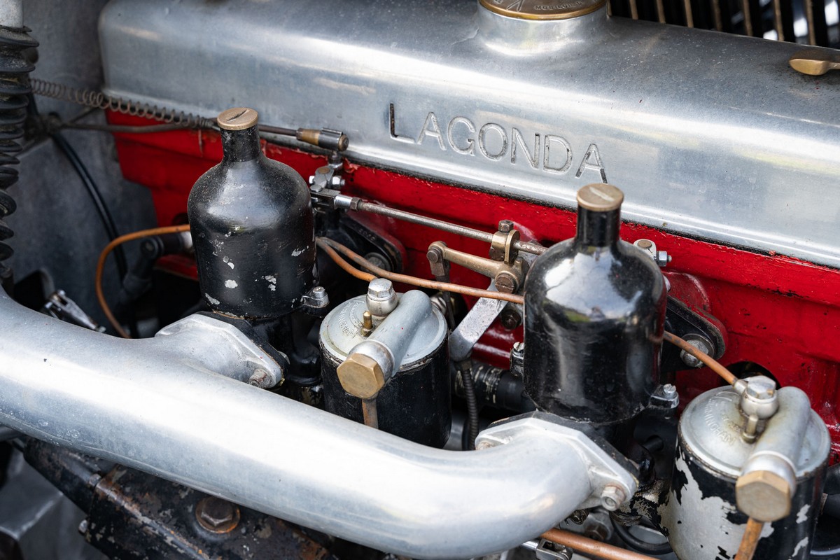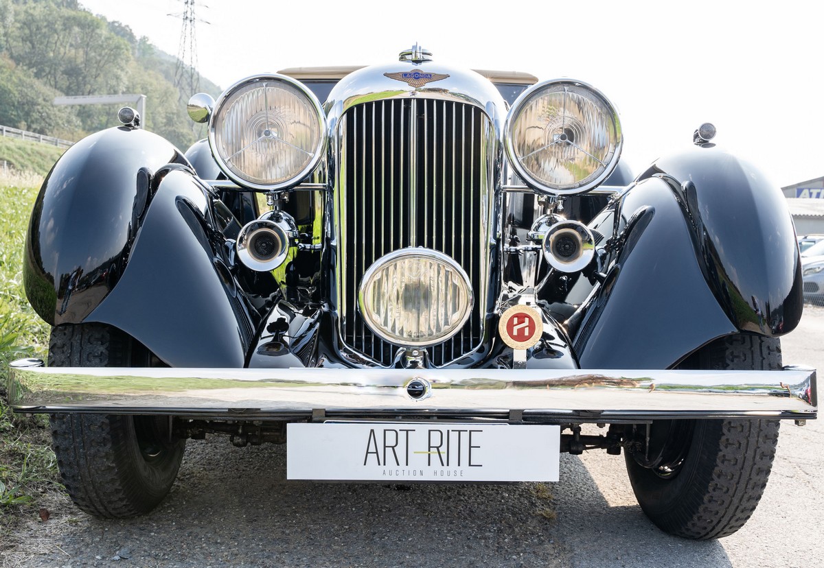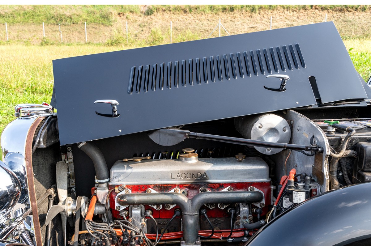 L'esemplare in asta, è una Lagonda LG45 DHC costruita nel 1937, e arrivata in Italia nel 2014 e immatricolata a Roma. L'auto è completa e in discrete condizioni estetiche e funzionali in relazione ai suoi quasi 100 anni. Il modello è oggi molto raro, in quanto ne hanno fatte 278, e oggi ne sono sopravvissute 93 -dato del registro Lagonda-, ed è la versione cabriolet, molto apprezzata negli USA. Nel 2021 l'auto è stata sottoposta a un restauro conservativo rispettando le specifiche originali, sono stati restaurati carrozzeria, telaio, capote e i rivestimenti interni, che sono stati tappezzati con materiali corretti per il modello, l'auto è stata riverniciata nel suo colore originale nero, sono presenti le fatture dei lavori eseguiti.L'auto è molto migliorata sotto il punto di vista della guidabilità e ha un ottimo spunto in fase d¿accensione, grazie ad alcune modiche, permettendo così di poterla utilizzare di più e guidarla con discreta facilità rispetto a una coeva auto del 1927. Monta infatti un sistema d'accensione a bobine e spinterogeni, e l'accensione elettronica, mentre sugli organi di guida è stato installato un impianto di servoassistenza al volante.