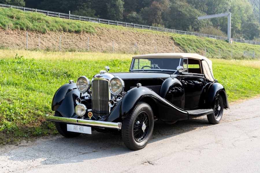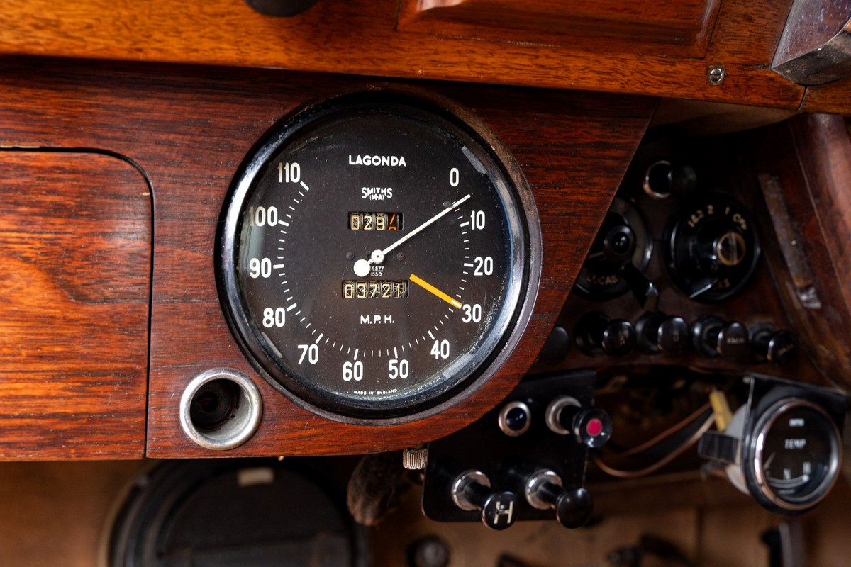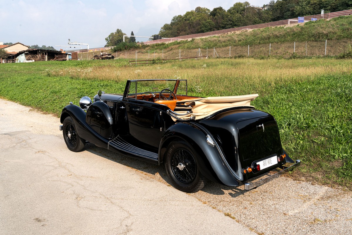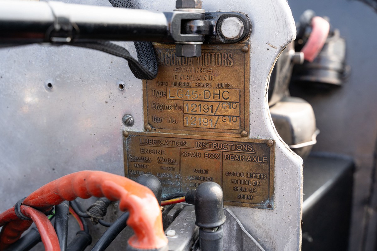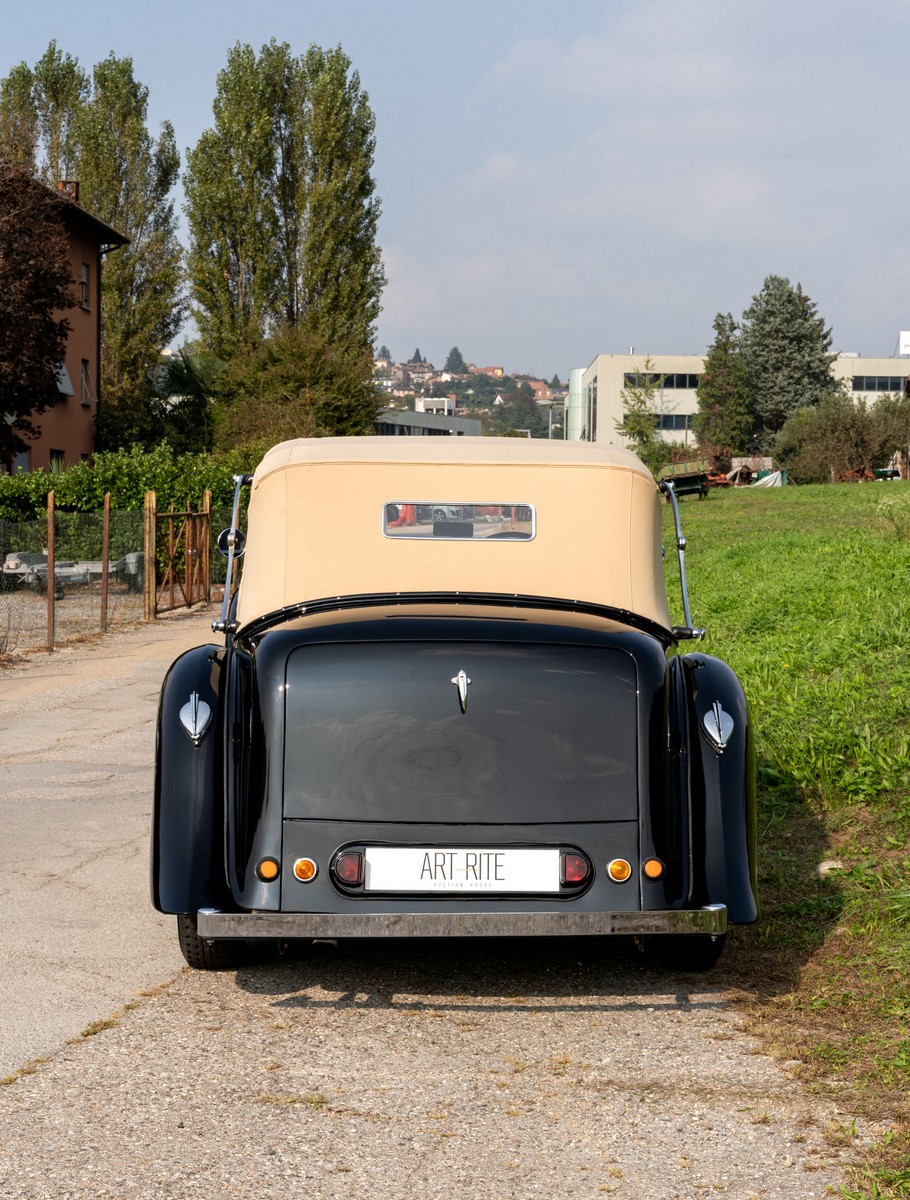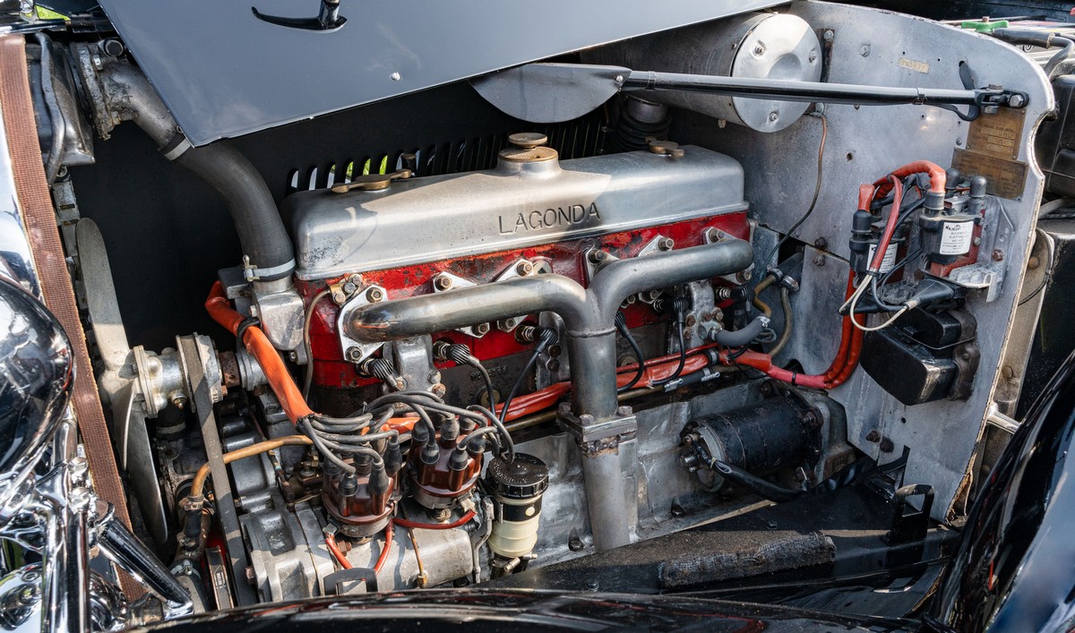 L'esemplare in asta, è una Lagonda LG45 DHC costruita nel 1937, e arrivata in Italia nel 2014 e immatricolata a Roma. L'auto è completa e in discrete condizioni estetiche e funzionali in relazione ai suoi quasi 100 anni. Il modello è oggi molto raro, in quanto ne hanno fatte 278, e oggi ne sono sopravvissute 93 -dato del registro Lagonda-, ed è la versione cabriolet, molto apprezzata negli USA. Nel 2021 l'auto è stata sottoposta a un restauro conservativo rispettando le specifiche originali, sono stati restaurati carrozzeria, telaio, capote e i rivestimenti interni, che sono stati tappezzati con materiali corretti per il modello, l'auto è stata riverniciata nel suo colore originale nero, sono presenti le fatture dei lavori eseguiti.L'auto è molto migliorata sotto il punto di vista della guidabilità e ha un ottimo spunto in fase d¿accensione, grazie ad alcune modiche, permettendo così di poterla utilizzare di più e guidarla con discreta facilità rispetto a una coeva auto del 1927. Monta infatti un sistema d'accensione a bobine e spinterogeni, e l'accensione elettronica, mentre sugli organi di guida è stato installato un impianto di servoassistenza al volante.