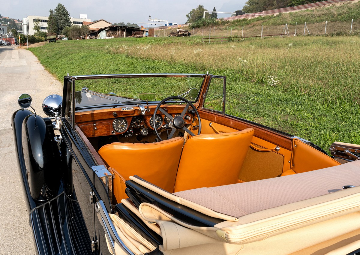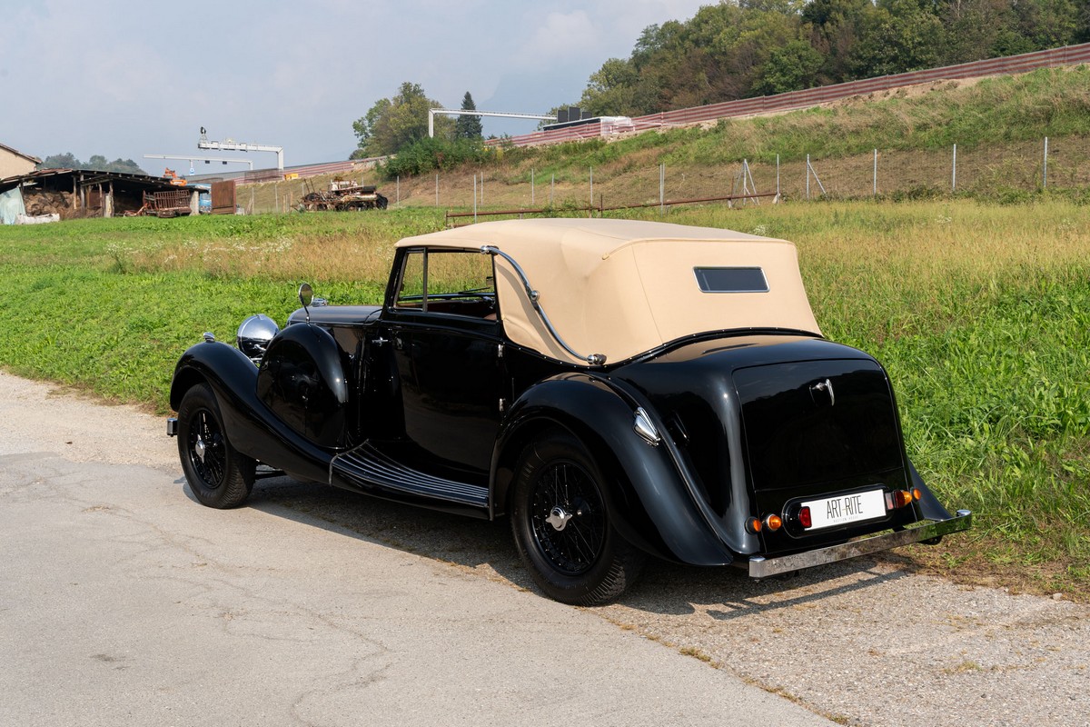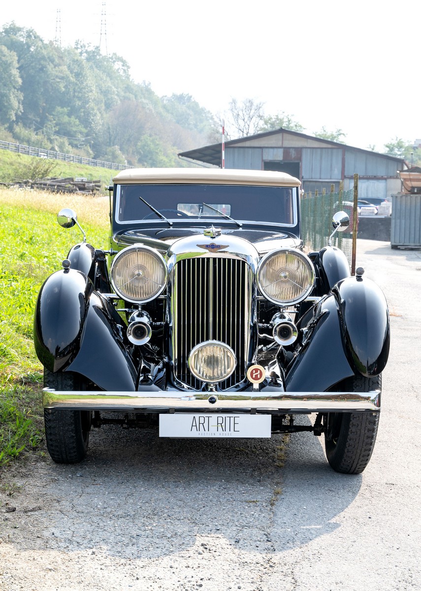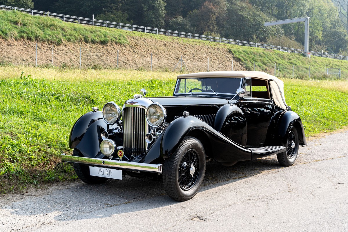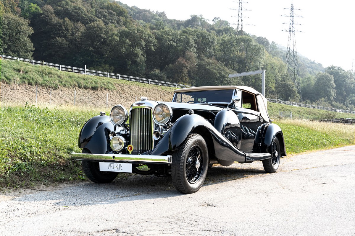 L'esemplare in asta, è una Lagonda LG45 DHC costruita nel 1937, e arrivata in Italia nel 2014 e immatricolata a Roma. L'auto è completa e in discrete condizioni estetiche e funzionali in relazione ai suoi quasi 100 anni. Il modello è oggi molto raro, in quanto ne hanno fatte 278, e oggi ne sono sopravvissute 93 -dato del registro Lagonda-, ed è la versione cabriolet, molto apprezzata negli USA. Nel 2021 l'auto è stata sottoposta a un restauro conservativo rispettando le specifiche originali, sono stati restaurati carrozzeria, telaio, capote e i rivestimenti interni, che sono stati tappezzati con materiali corretti per il modello, l'auto è stata riverniciata nel suo colore originale nero, sono presenti le fatture dei lavori eseguiti.L'auto è molto migliorata sotto il punto di vista della guidabilità e ha un ottimo spunto in fase d¿accensione, grazie ad alcune modiche, permettendo così di poterla utilizzare di più e guidarla con discreta facilità rispetto a una coeva auto del 1927. Monta infatti un sistema d'accensione a bobine e spinterogeni, e l'accensione elettronica, mentre sugli organi di guida è stato installato un impianto di servoassistenza al volante.