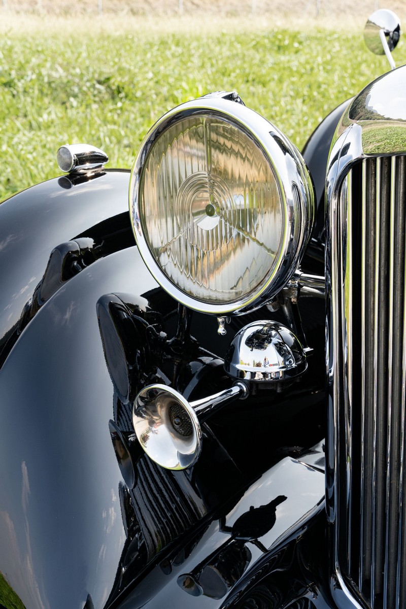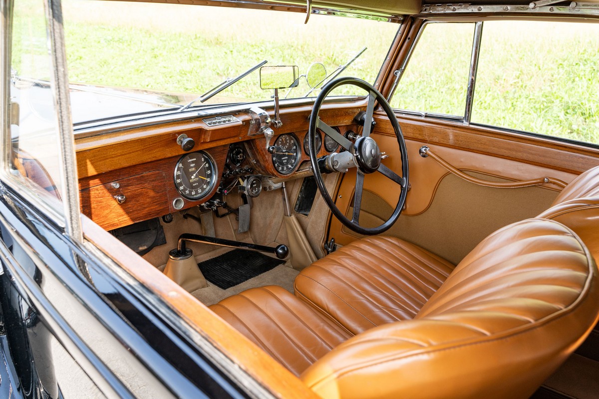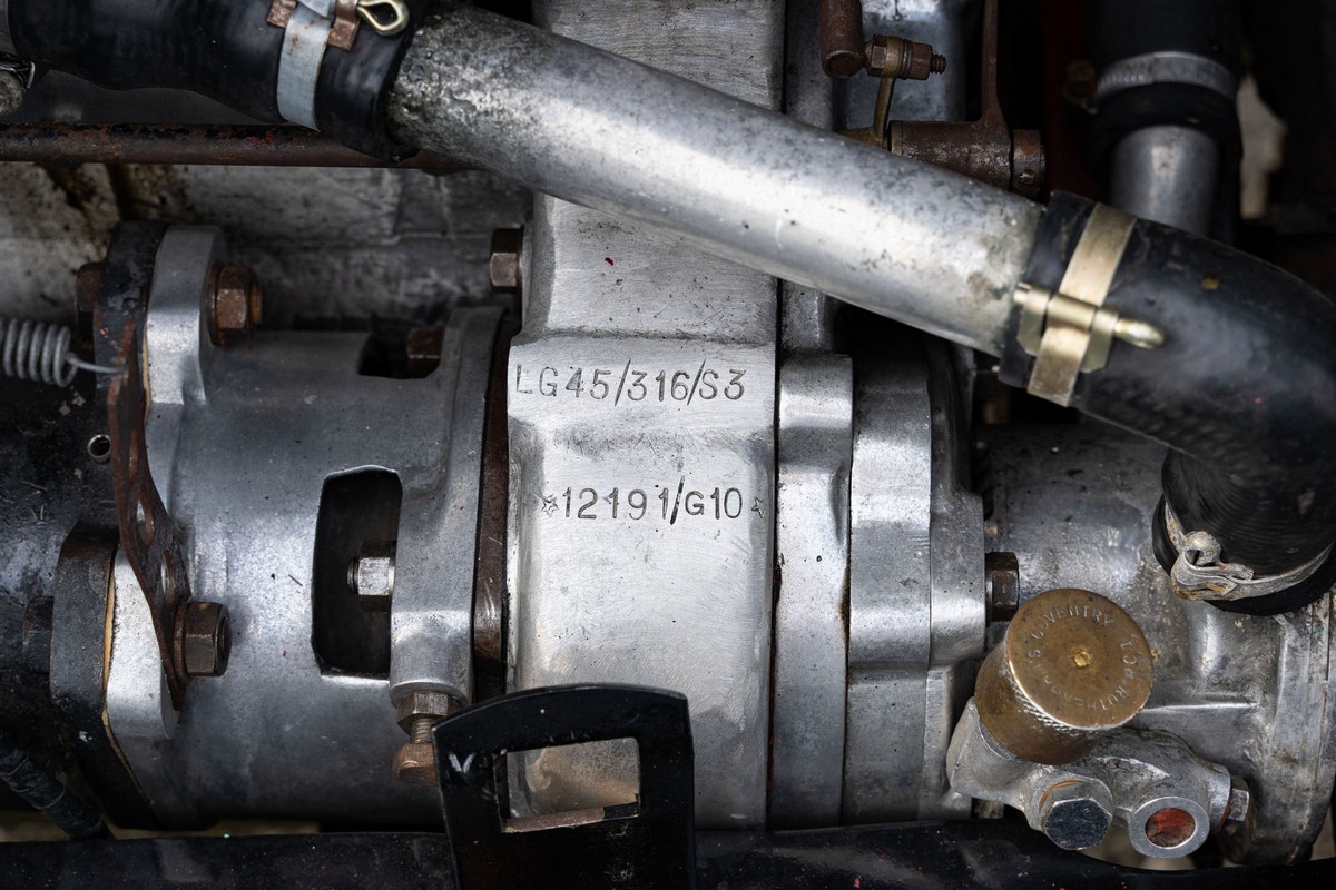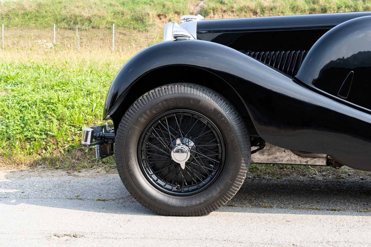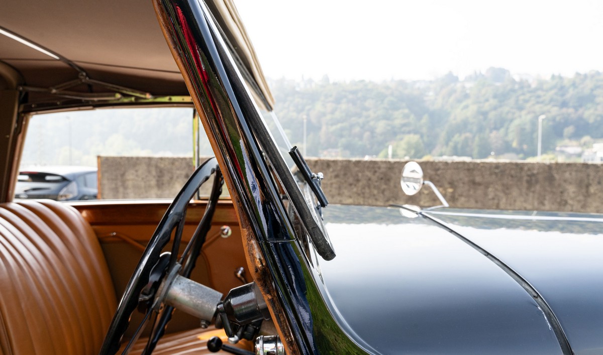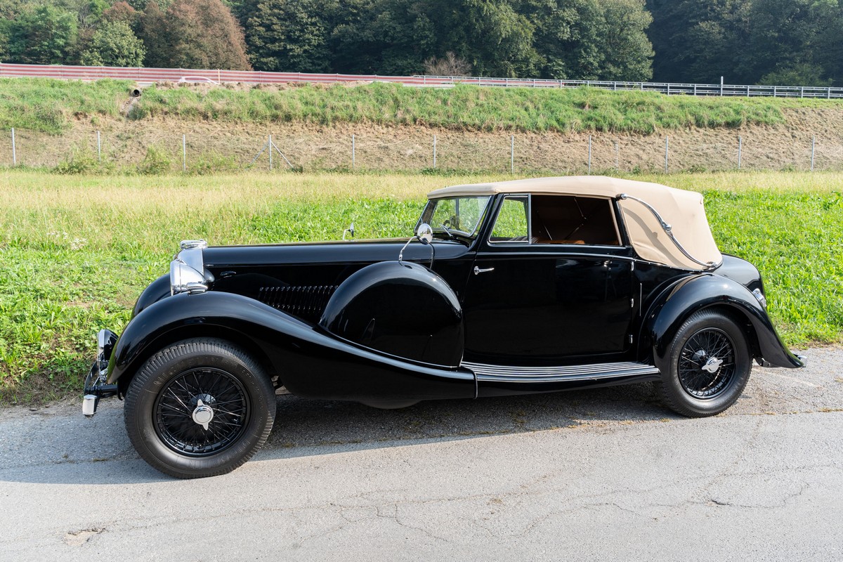 L'esemplare in asta, è una Lagonda LG45 DHC costruita nel 1937, e arrivata in Italia nel 2014 e immatricolata a Roma. L'auto è completa e in discrete condizioni estetiche e funzionali in relazione ai suoi quasi 100 anni. Il modello è oggi molto raro, in quanto ne hanno fatte 278, e oggi ne sono sopravvissute 93 -dato del registro Lagonda-, ed è la versione cabriolet, molto apprezzata negli USA. Nel 2021 l'auto è stata sottoposta a un restauro conservativo rispettando le specifiche originali, sono stati restaurati carrozzeria, telaio, capote e i rivestimenti interni, che sono stati tappezzati con materiali corretti per il modello, l'auto è stata riverniciata nel suo colore originale nero, sono presenti le fatture dei lavori eseguiti.L'auto è molto migliorata sotto il punto di vista della guidabilità e ha un ottimo spunto in fase d¿accensione, grazie ad alcune modiche, permettendo così di poterla utilizzare di più e guidarla con discreta facilità rispetto a una coeva auto del 1927. Monta infatti un sistema d'accensione a bobine e spinterogeni, e l'accensione elettronica, mentre sugli organi di guida è stato installato un impianto di servoassistenza al volante.