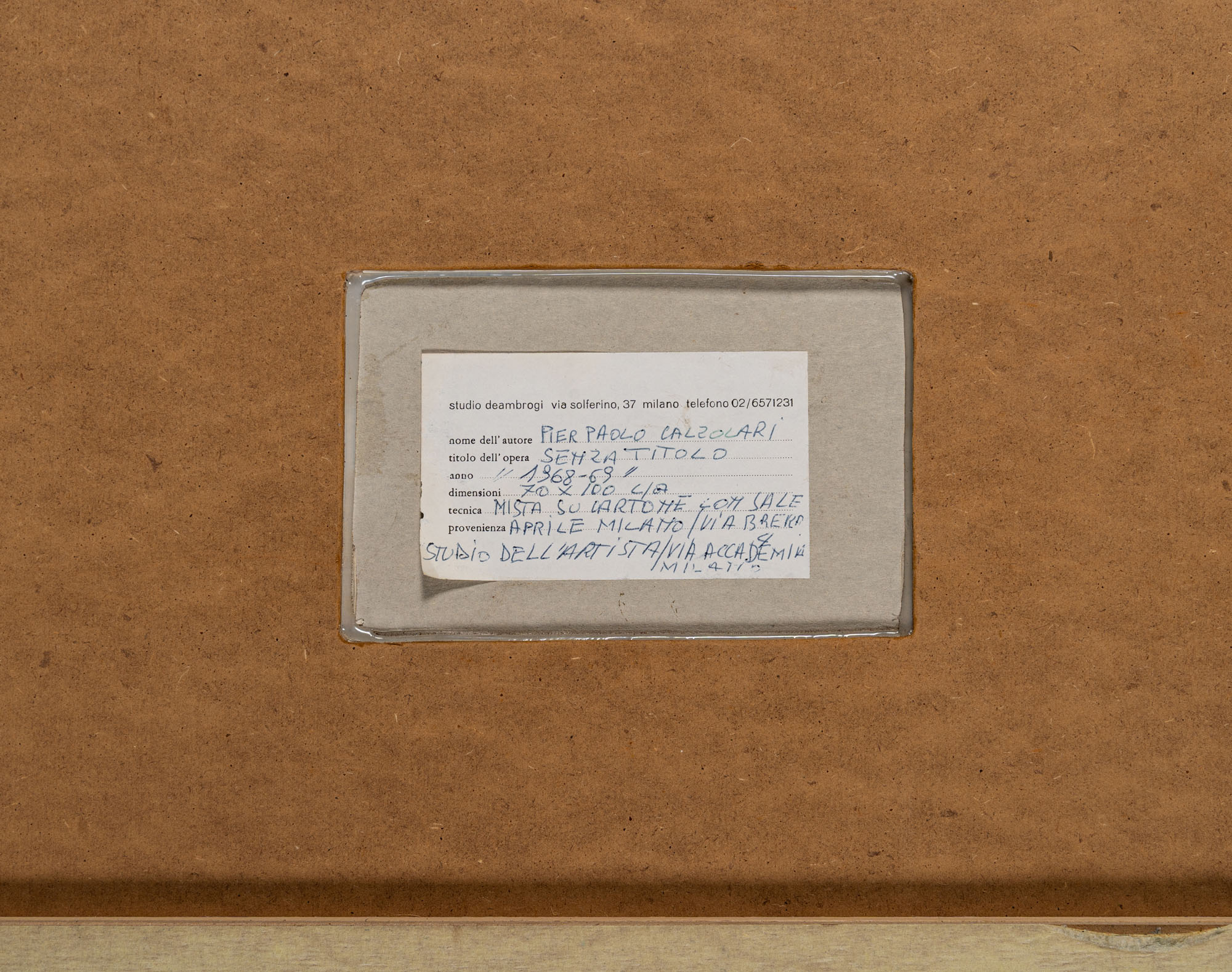 L' opera è registrata nell'archivio della Fondazione Calzolari, Fossombrone con il numero AL-CAL-1968-80