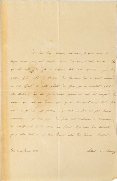 Carlo Alberto di Savoia - Lettera indirizzata alla principessa di Beauffremont