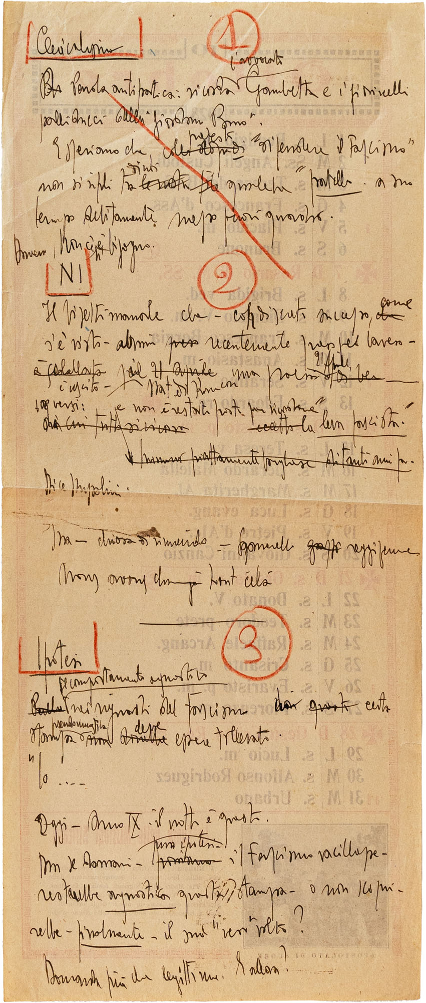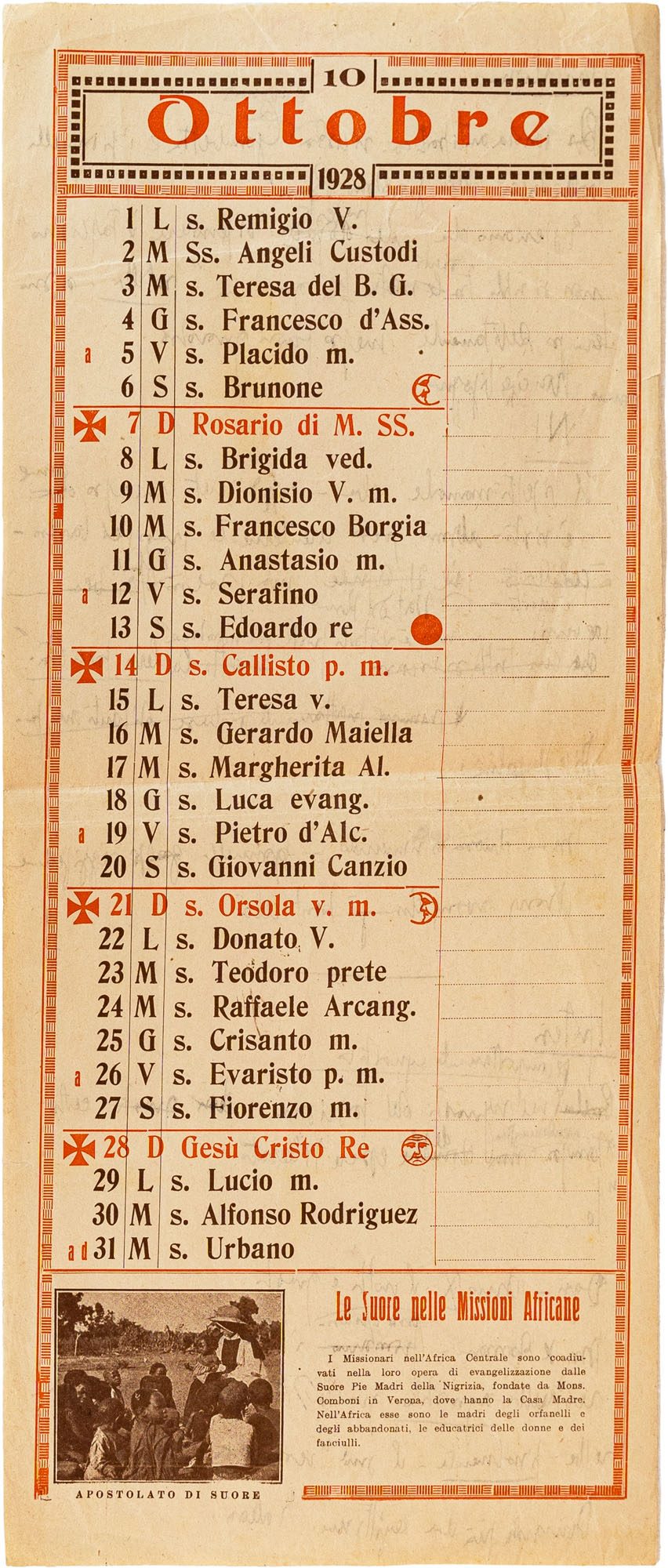 Benito Mussolini - Appunti autografi su pagina di calendario dell'ottobre 1928