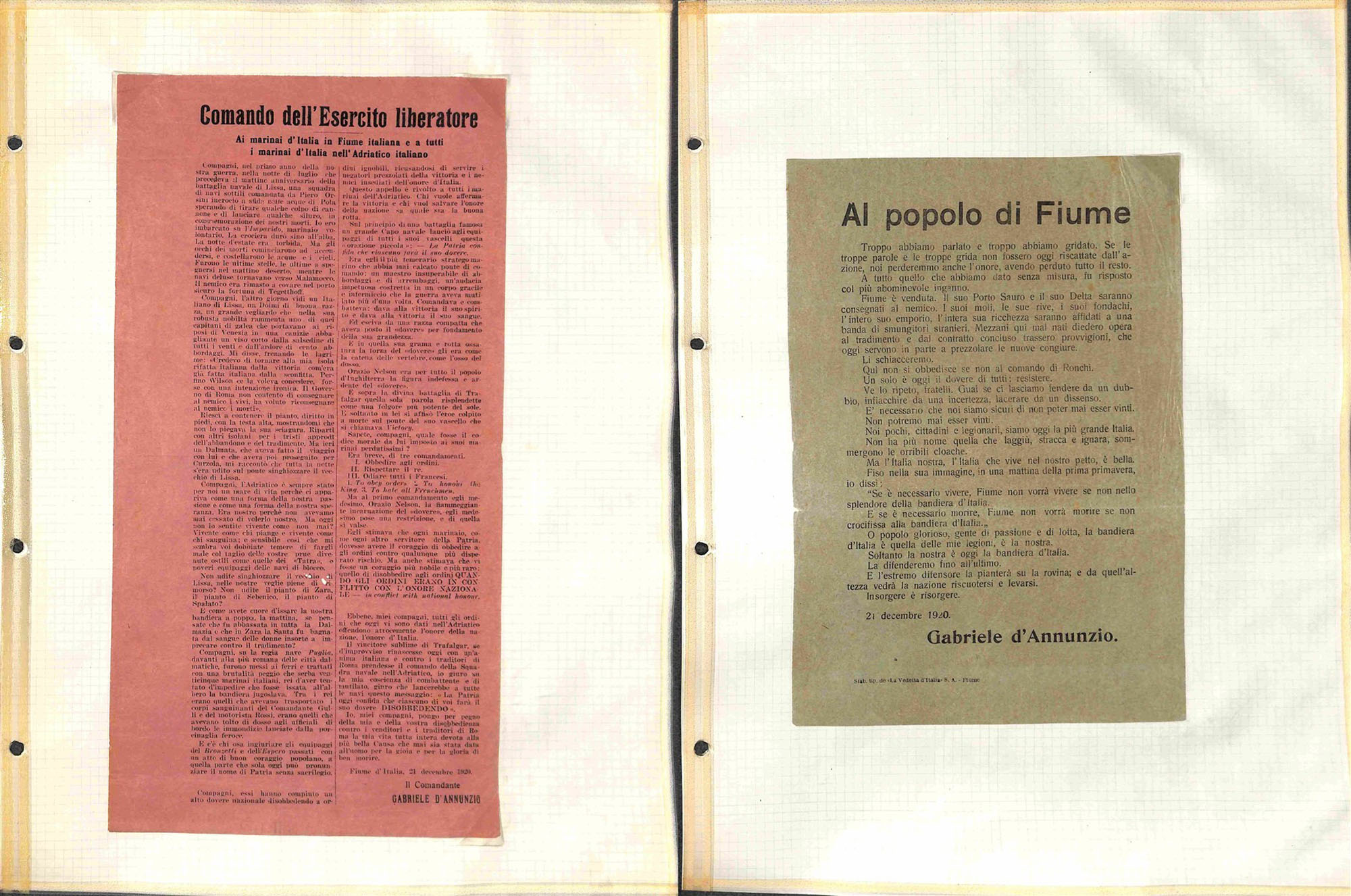 Lotti&Collezioni - D'ANNUNZIO/FIUME - 1919/1922 - Splendida collezione di 295 volantini del periodo in 4 grandi album