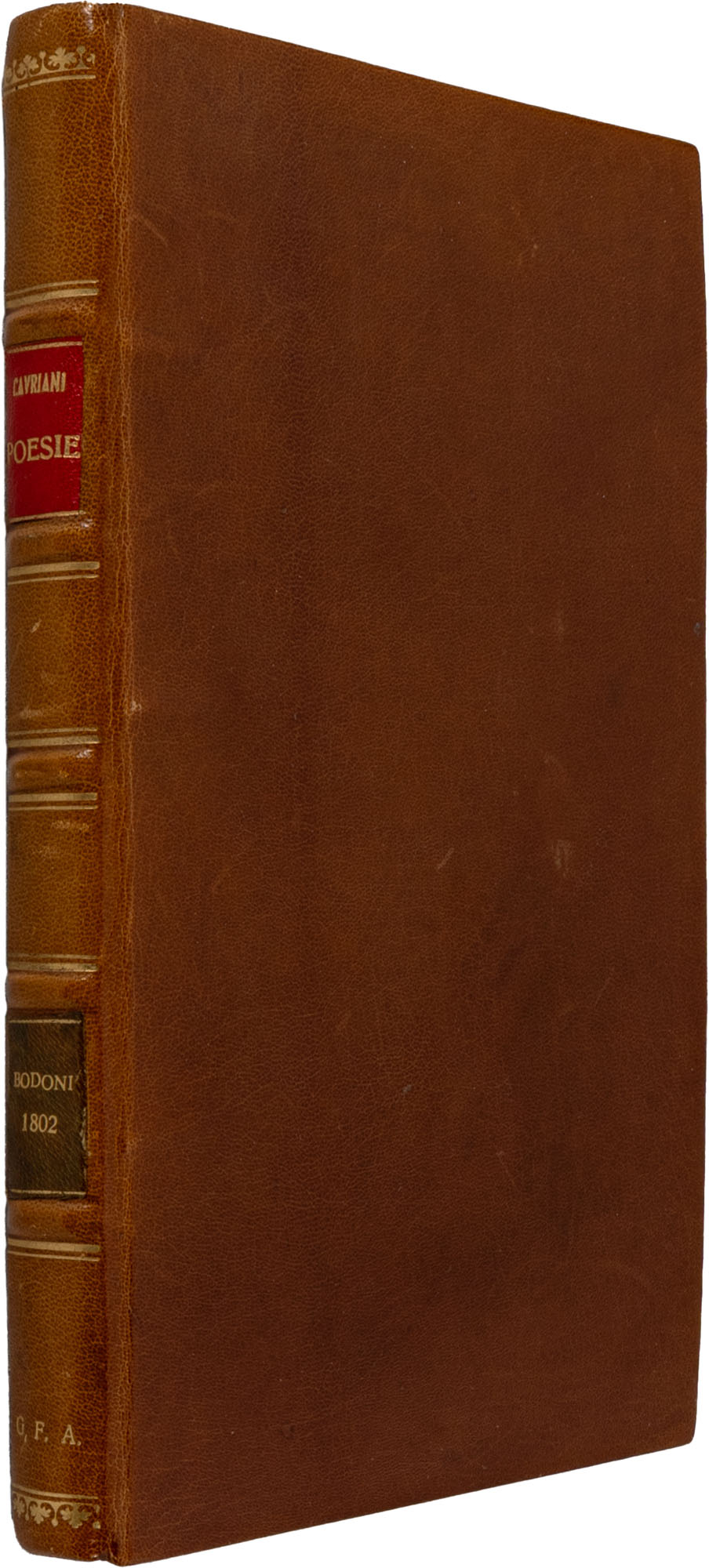 Legatura in piena pelle con titoli in oro al dorso; medaglia incisa in rame al frontespizio