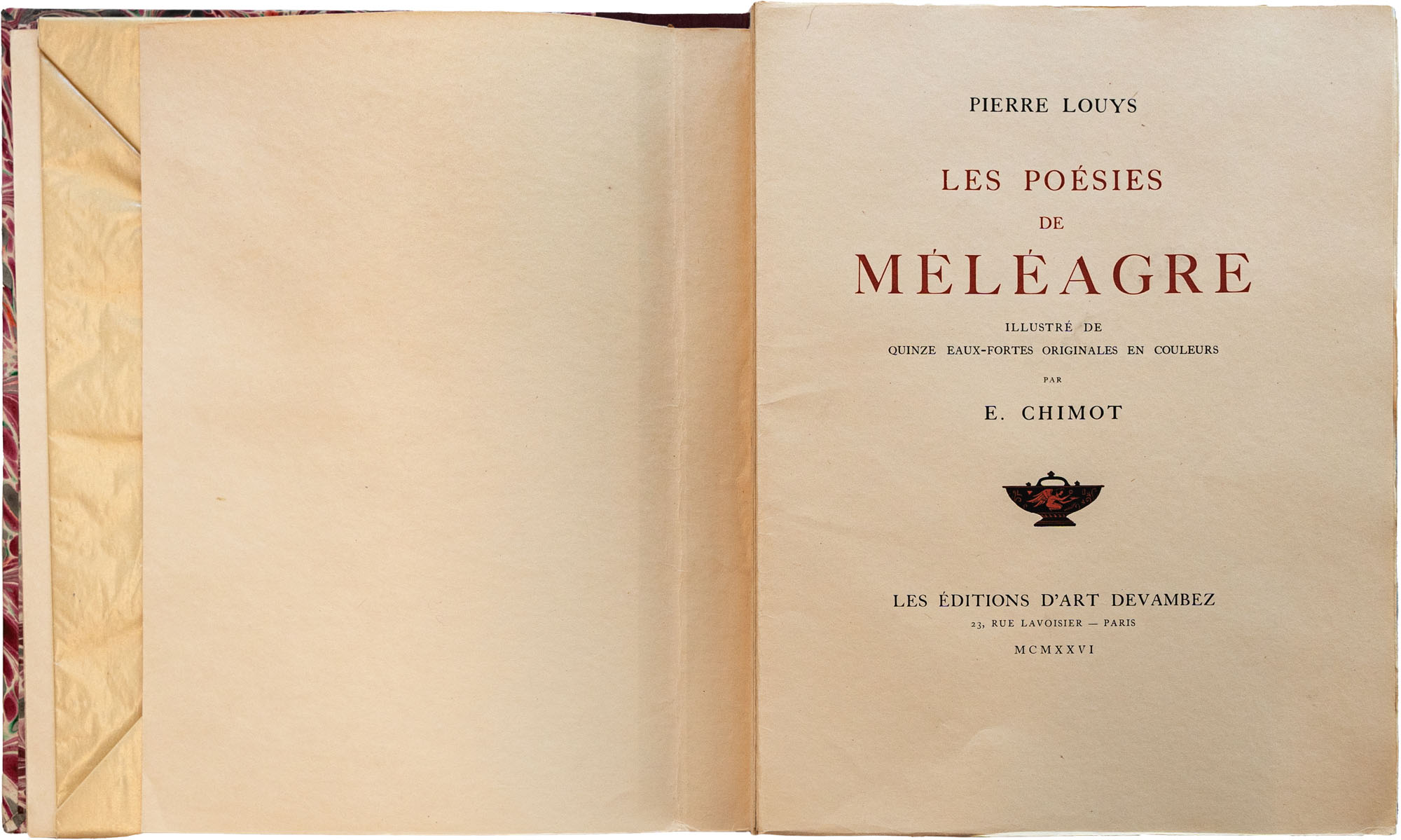 Pierre Louys - Les poesies de Meleagre. Illustré de quinze eaux-fortes originales en couleurs par E. Chimot