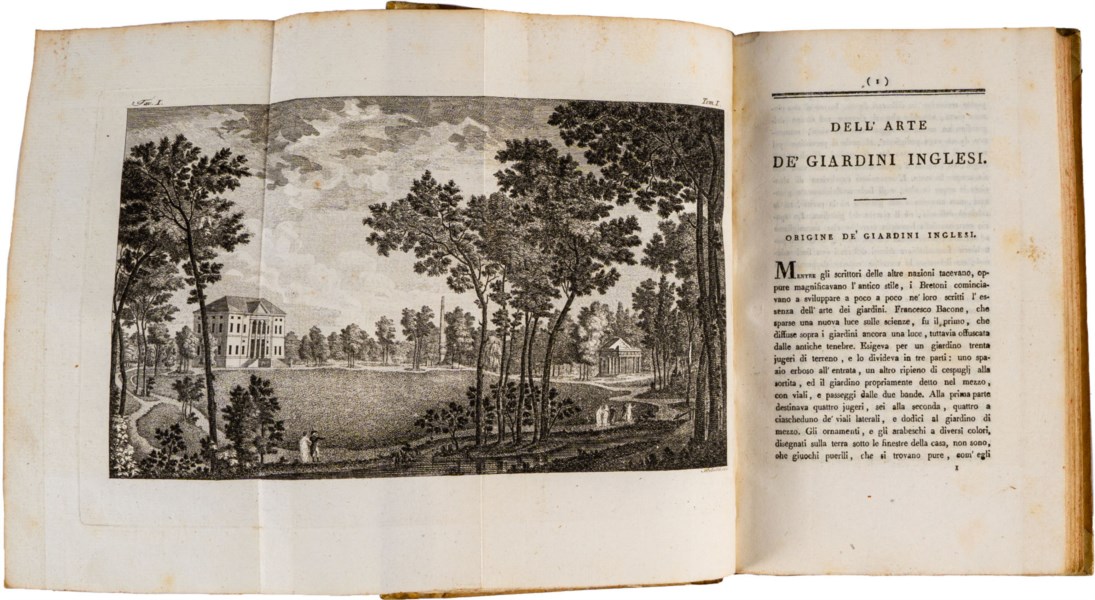 2 volumi, legatura coeva in mezza pelle con angoli in pergamena, titolo (in tassello) e fregi oro al dorso, tagli a spruzzo rossi