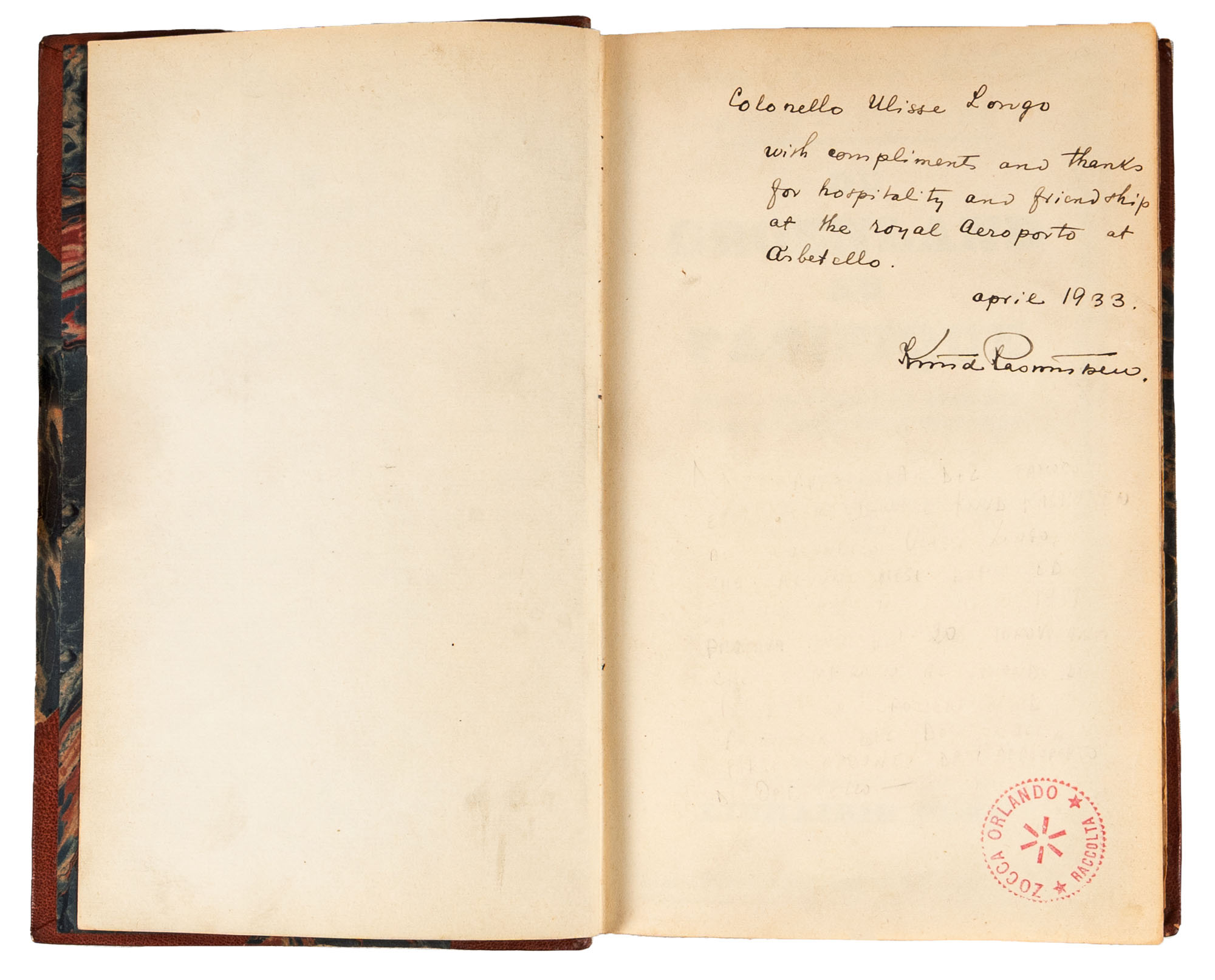 Con bella dedica autografa al colonnello Ulisse Longo con un ringraziamento per l'ospitalità del R. ricevuta a Orbetello