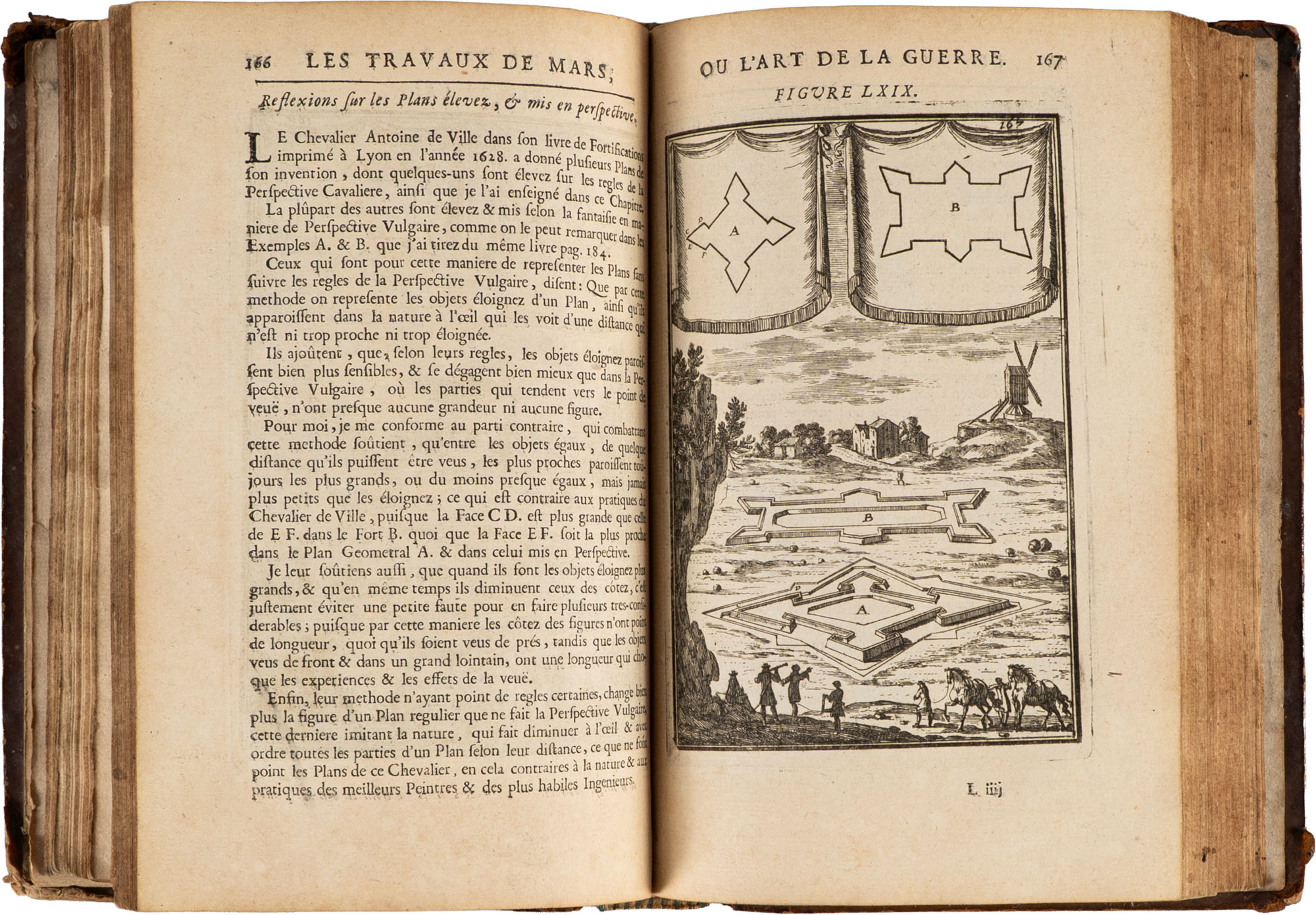 Allain Manesson Mallet - Les traveaux de Mars, ou l'art de la guerre divise' en trois parties... lettera dedicatoria al re