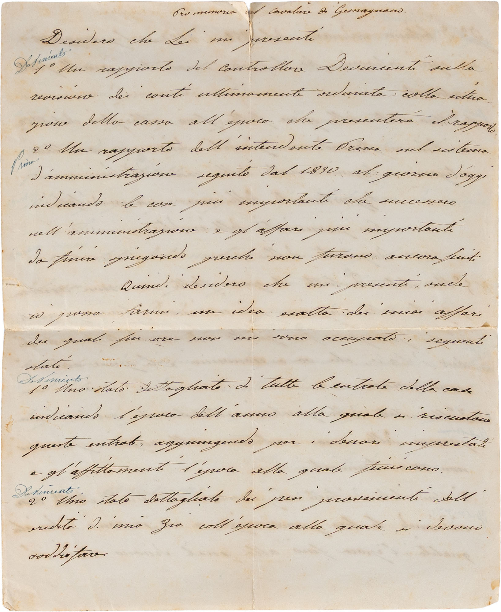 Lettera nella quale (con tono seccato e autoritario) chiede di ricevere i rendiconti di tutte le sue proprietà