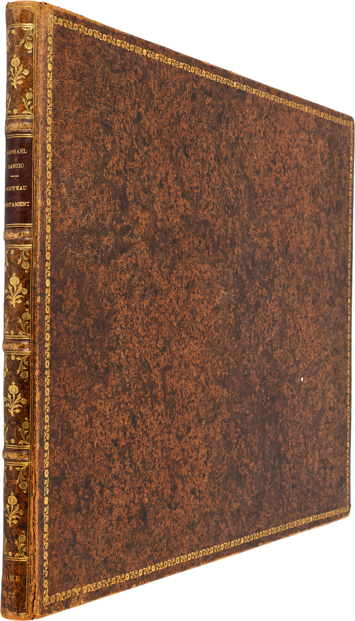 Legatura in piena pelle screziata, dorso elaborato e punzonato in oro con titolo e tagli in oro