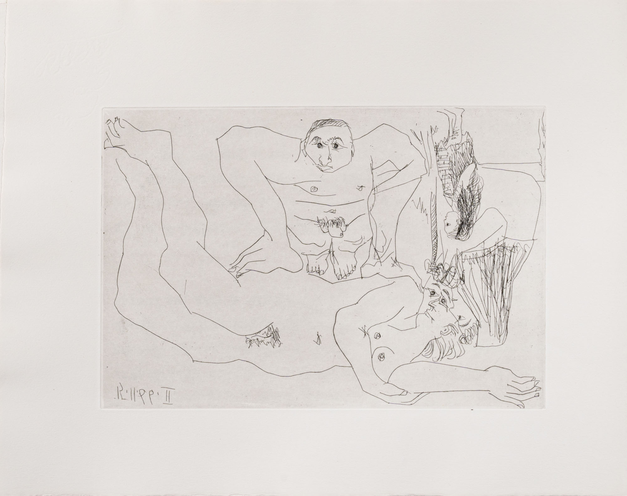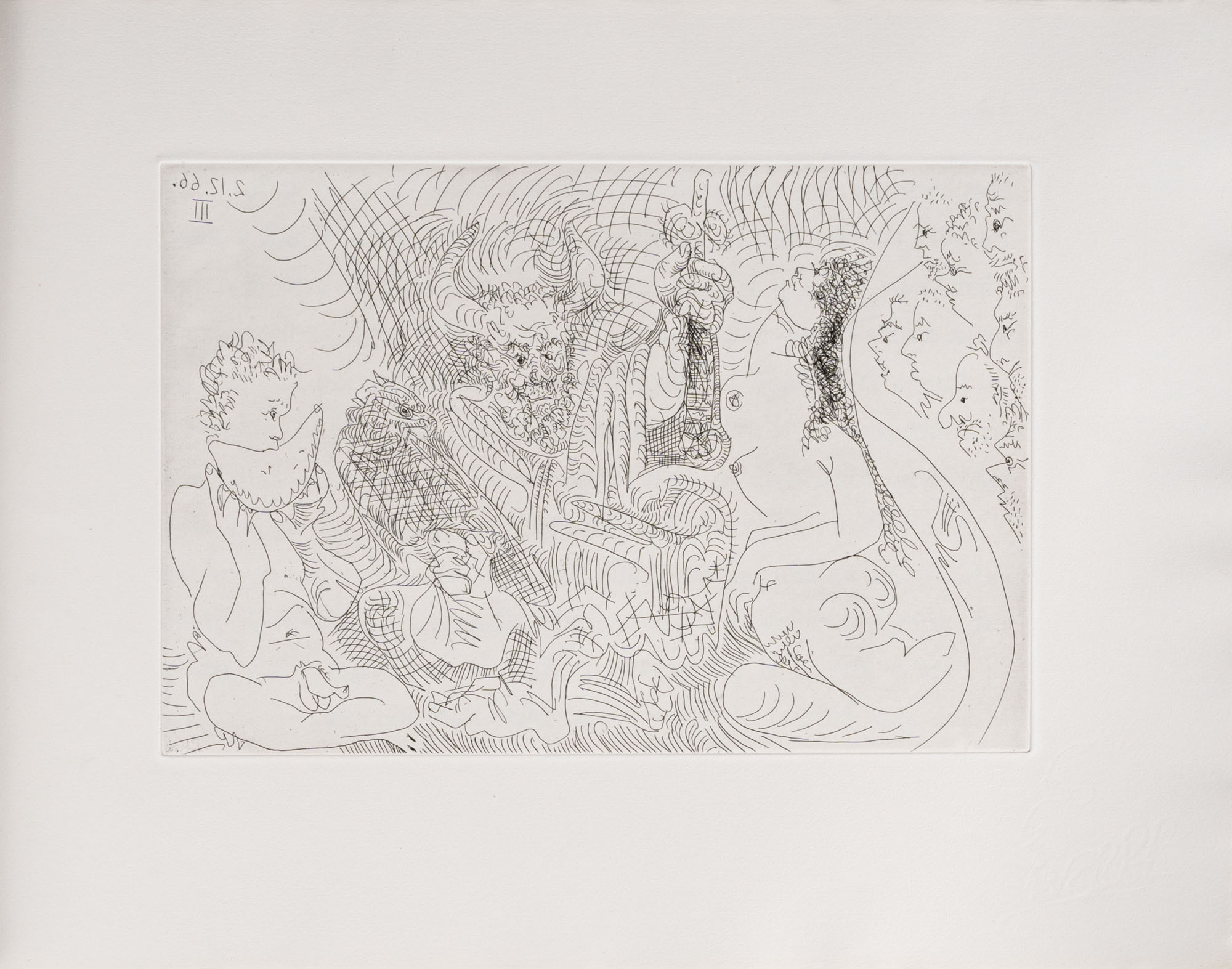 La puntasecca è firmata a matita in basso a destra e numerata in basso a sinistra