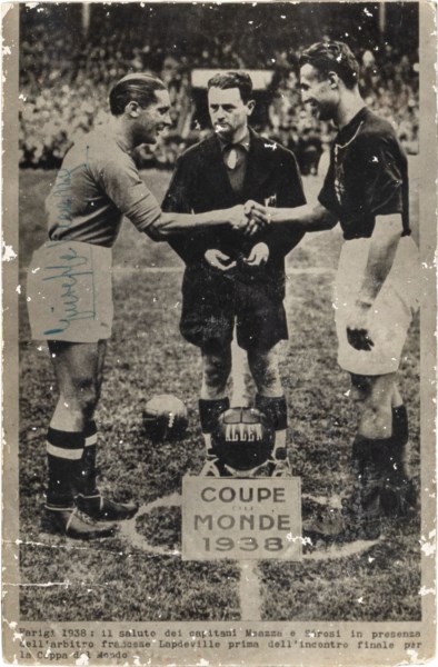 La fotografia rappresenta un importante cimelio della finale della Coppa Rimet di quell'anno, vinta per la seconda volta consecutiva dalla nazionale azzurra. Il commissario tecnico era all'epoca Vittorio Pozzo e Meazza, che già aveva vinto nel 1934, era il giocatore più famoso di quella squadra