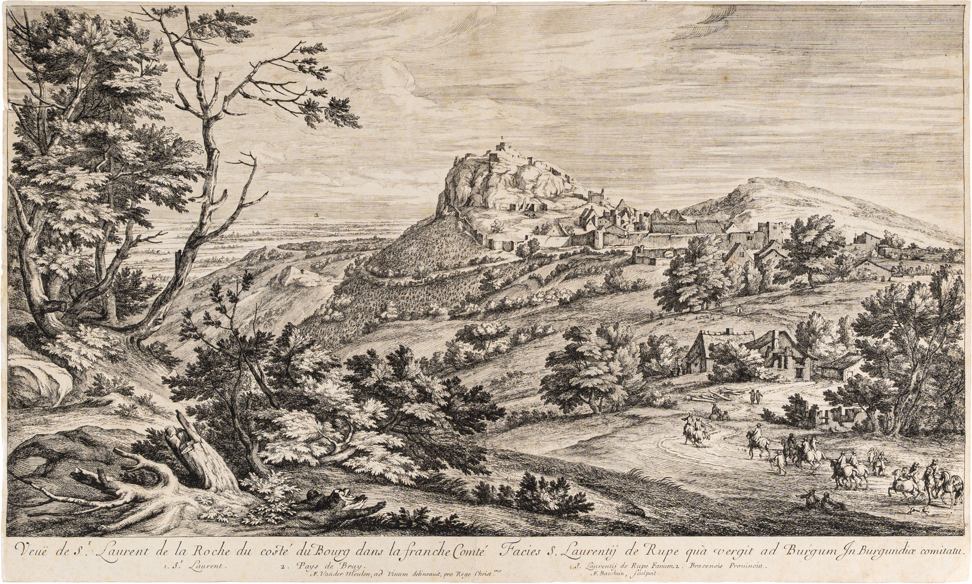 Adriaen Frans Boudewyns (Bruxelles, 1644 - ivi, 1711) da Adam François van der Meulen (Bruxelles, 1632 - Parigi, 1690) - Veduta di Saint Laurent de la Roche