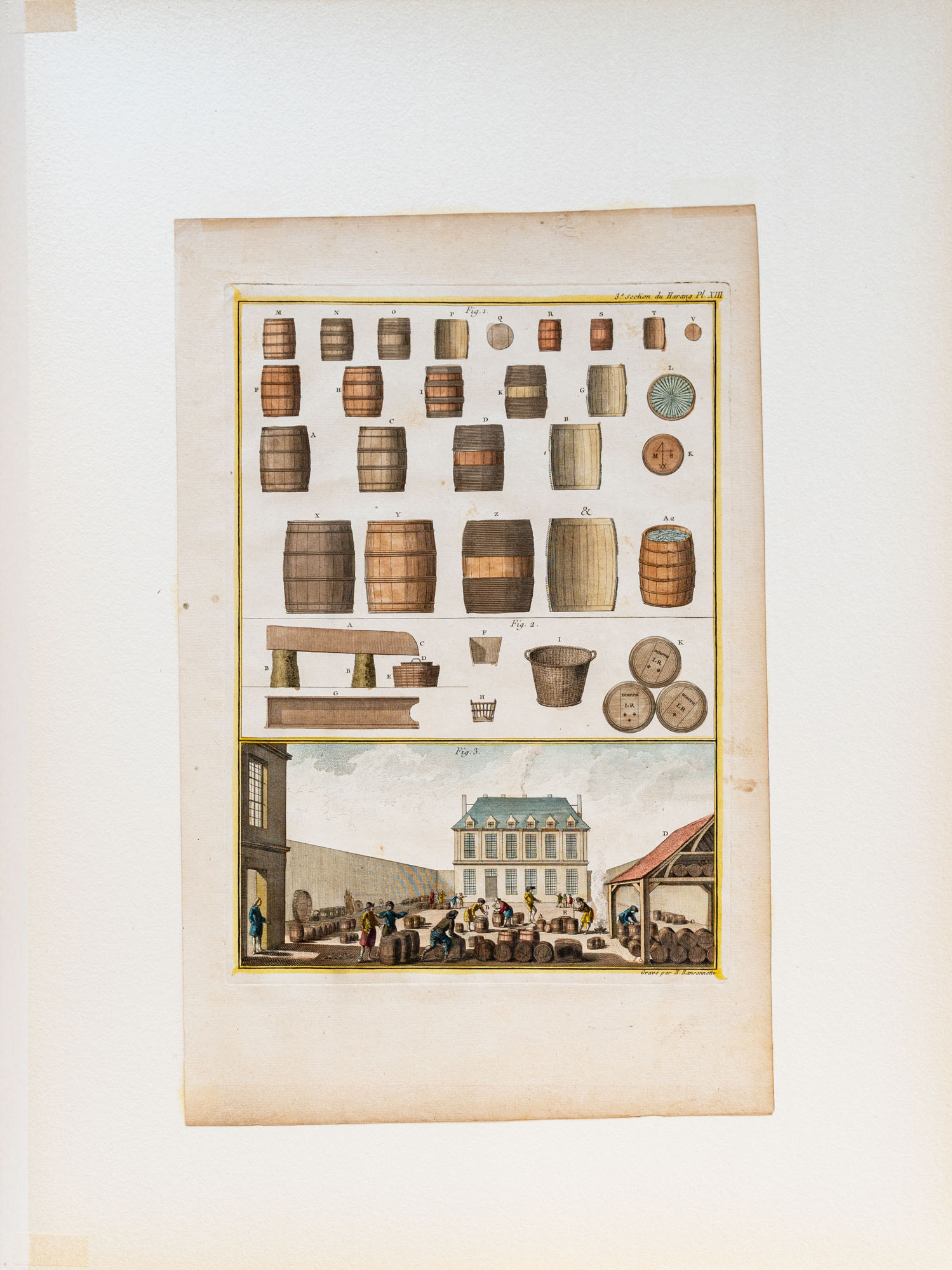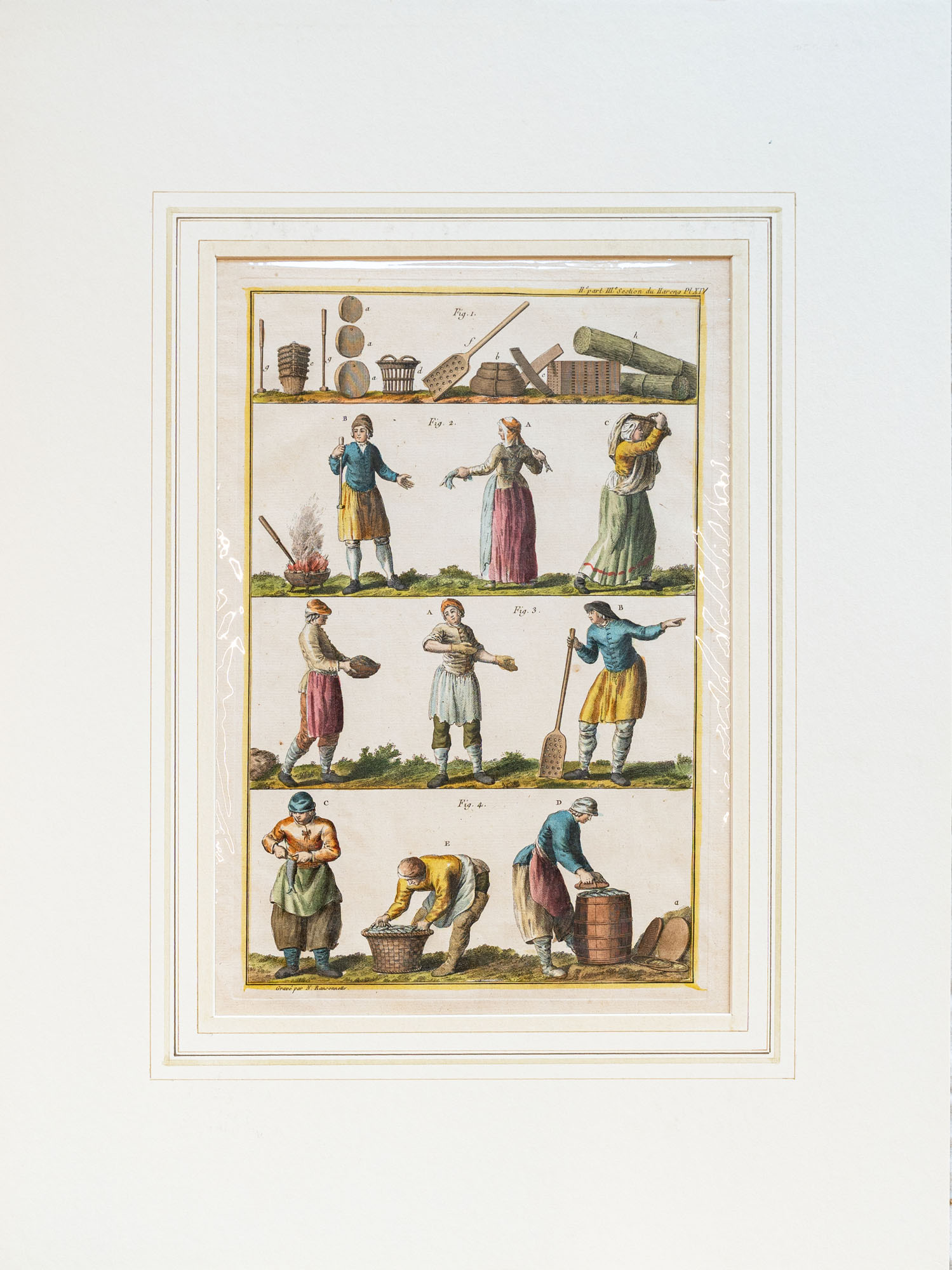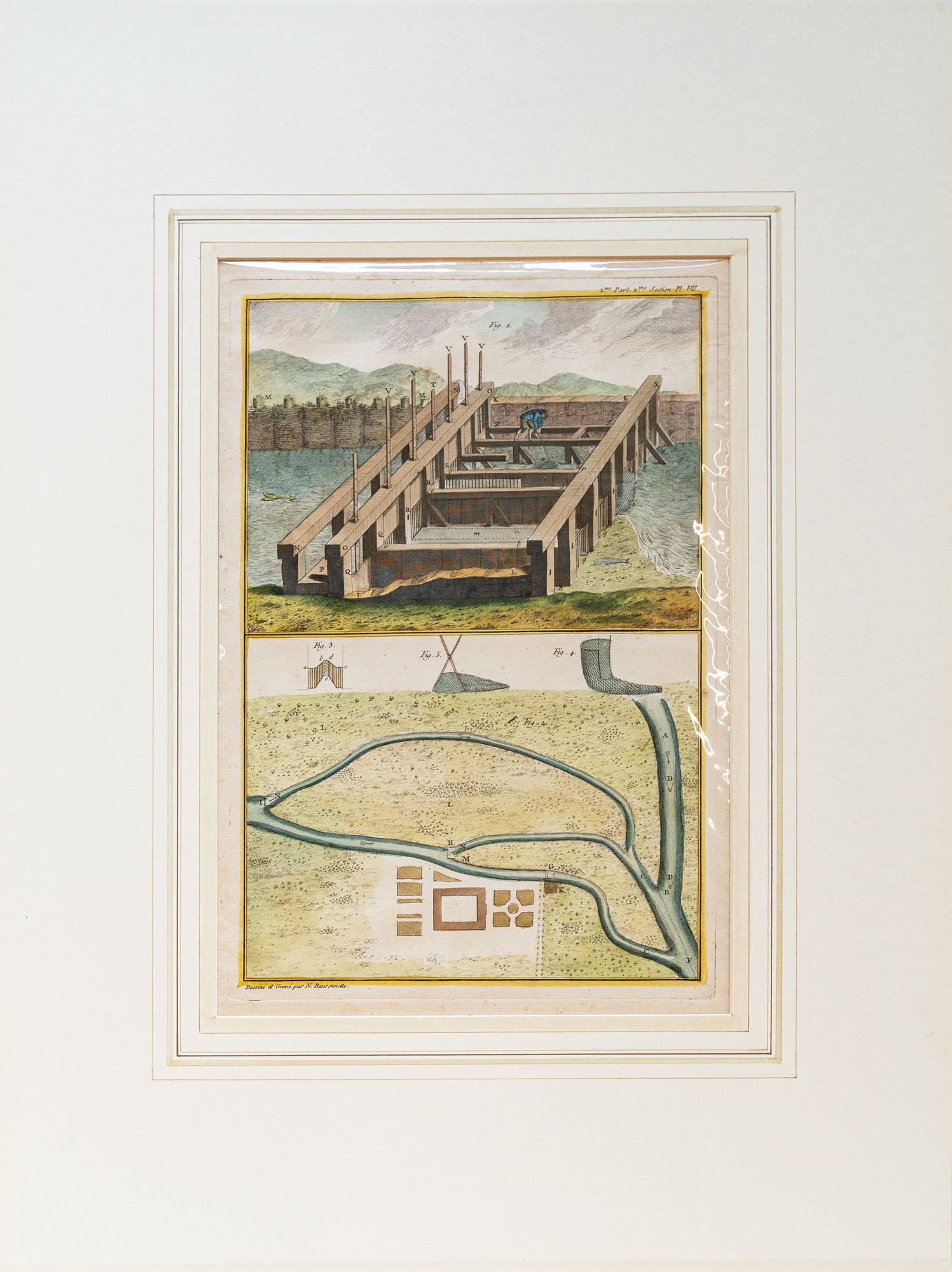 N. Ransonette - Sei incisioni in rame colorate a mano raffiguranti cattura, allevamento e conservazione del pesce