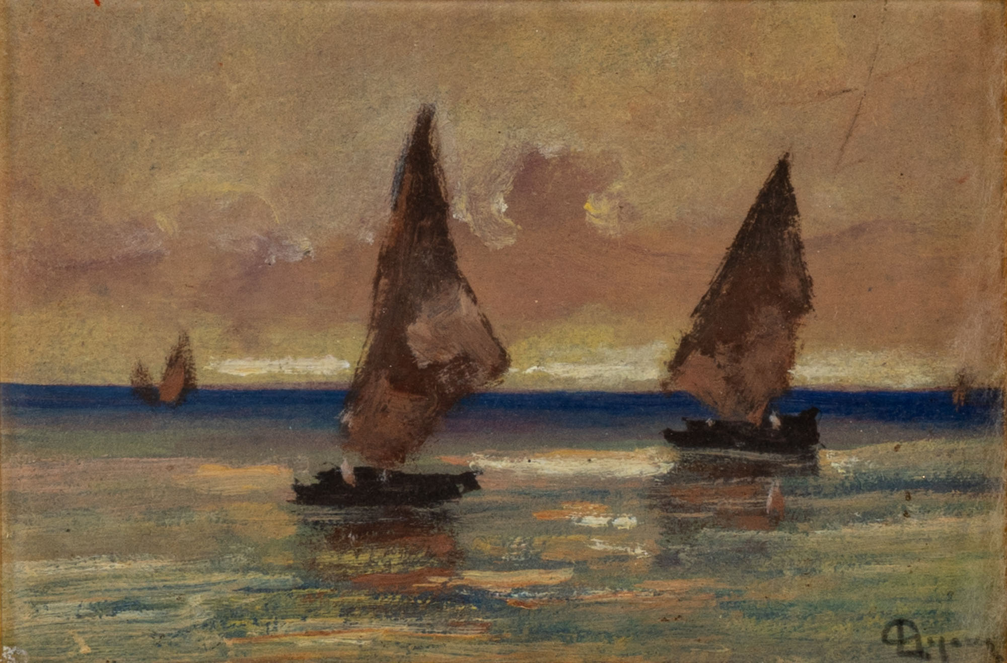 Lorenzo Gignous (Modena, 1862 - Porto Ceresio, 1958) - Veduta con barche