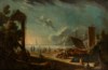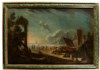 Scuola veneta del secolo XVIII - Capriccio con rovine, imbarcazioni e figure