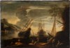 Scuola italiana del secolo XVII - Marina con vascelli in porto e figure