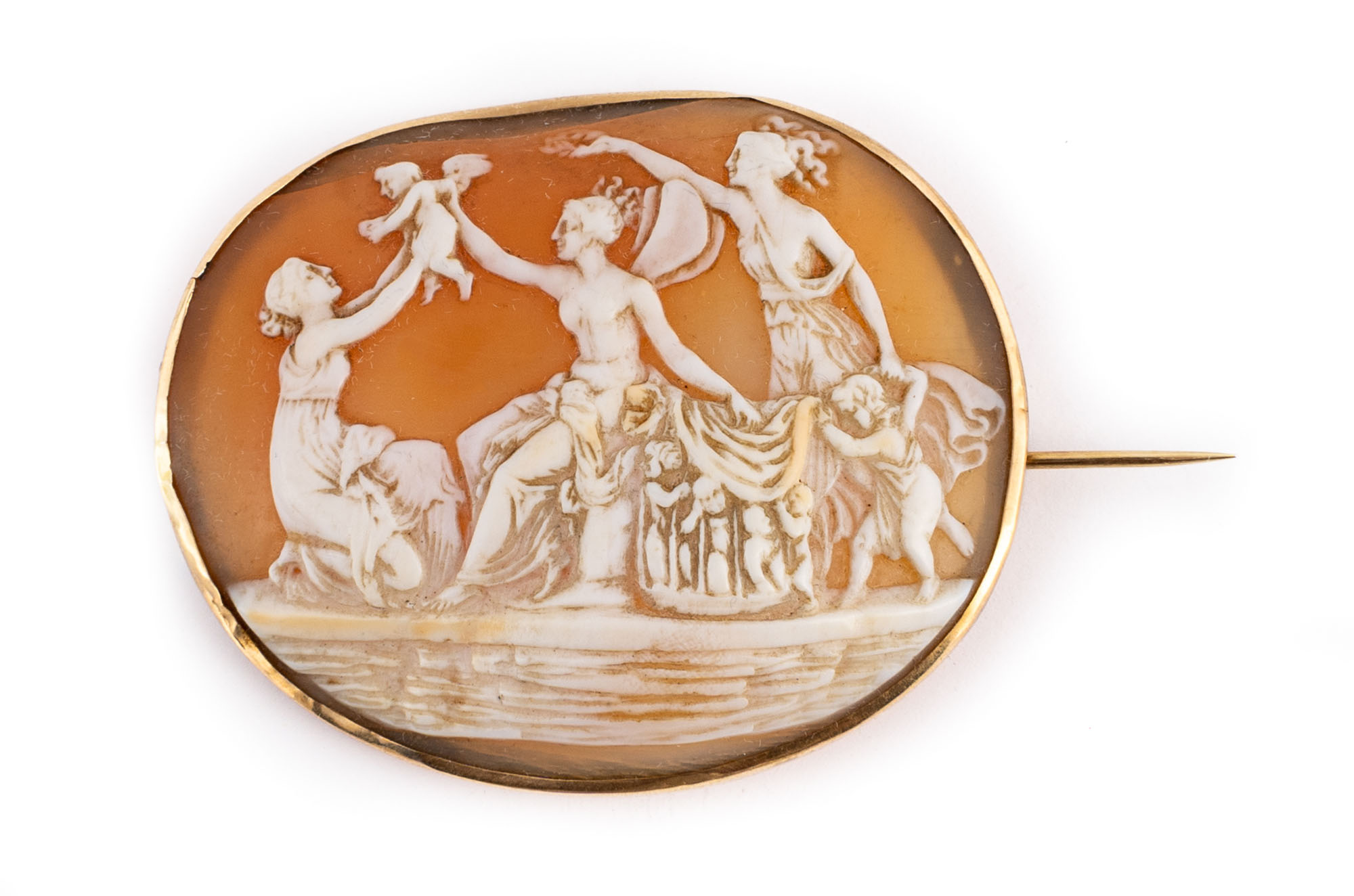 Spilla in oro e cammeo in conchiglia