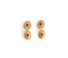 Paio di gemelli in oro rosa satinato 18kt ciascuno composto da due elementi ovali affiancati , collegati da una barretta rigida, bordati a pizzo con al centro di ciascun ovale un rubino cabochon bordato con cesellatura a giorno in stile pizzo