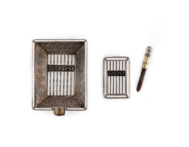 Posacenere e accendino in argento, Francia, 1930 ca
