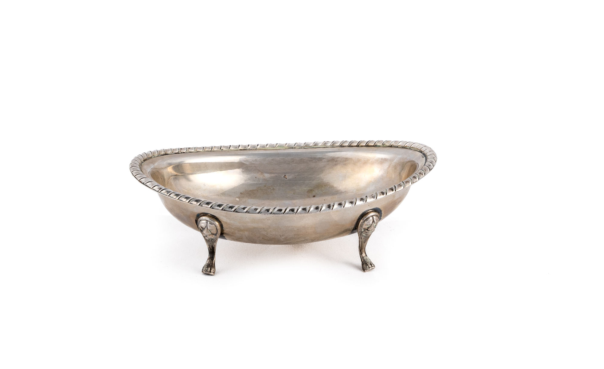 Di forma ovale con bordi leggermente svasati decorati da un motivo cordonato sorretta da quattro piedini
