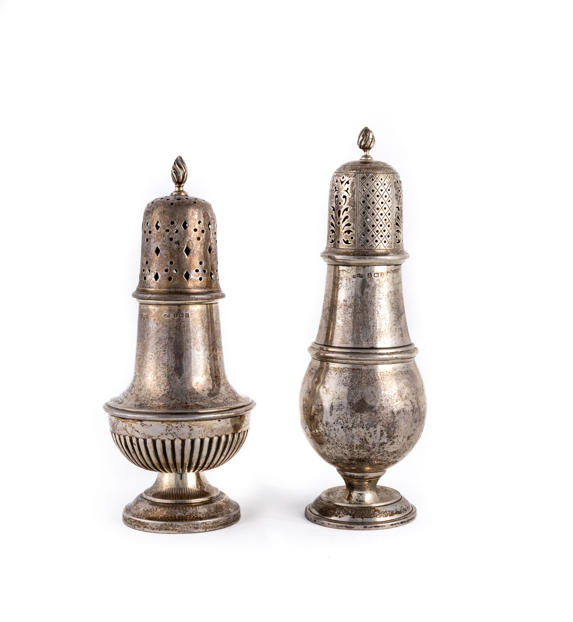 Due spargizucchero in argento 925, Inghilterra, XX secolo
