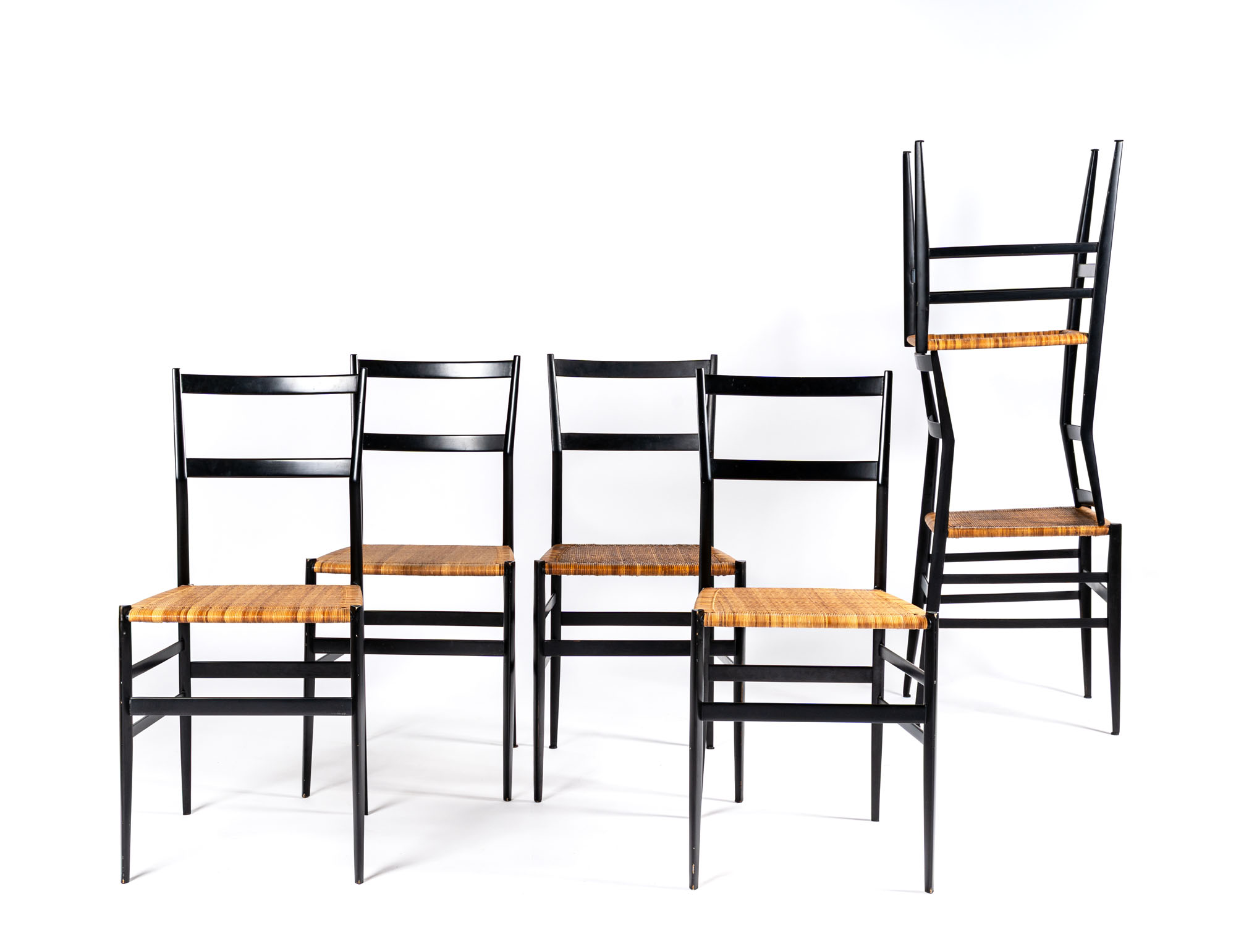 Struttura in frassino laccato e seduta in paglia intrecciata, produzione Cassina, Meda, Italia, 1957 circa