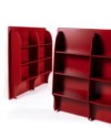 Librerie a parete con struttura in legno laminato laccato color rosso, produzione Azucena, Italia, 1960 circa