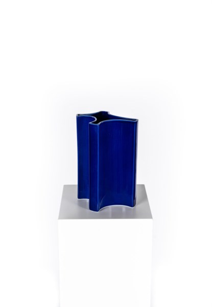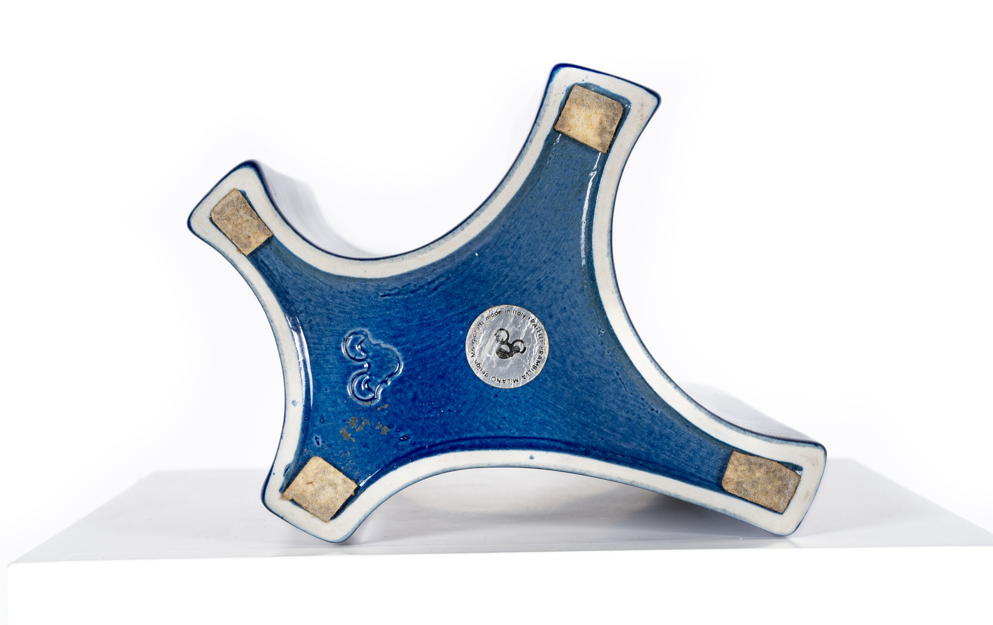 Ceramica Vitreous China, smaltata blu, marchio ed etichetta alla base, produzione Fratelli Brambilla, Italia, 1970 circa