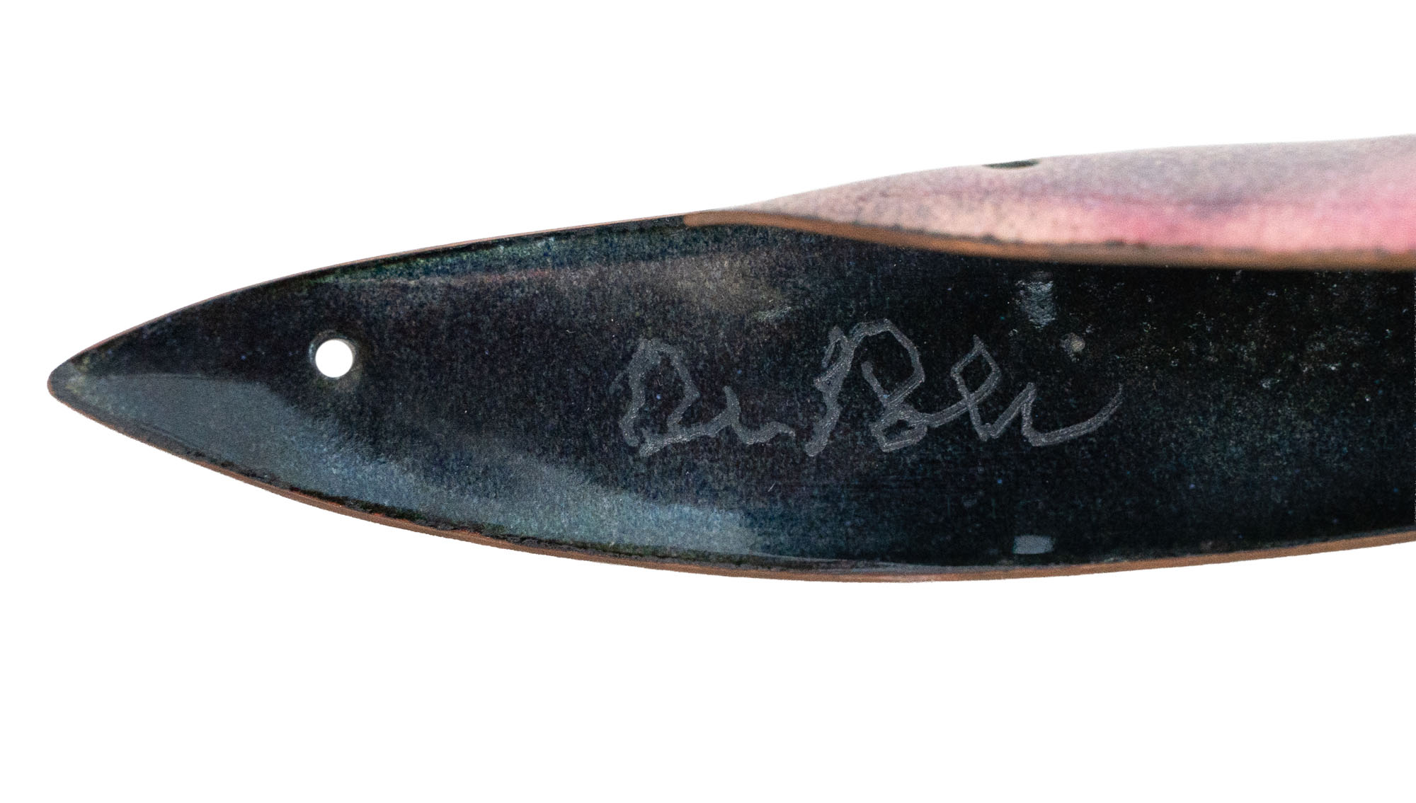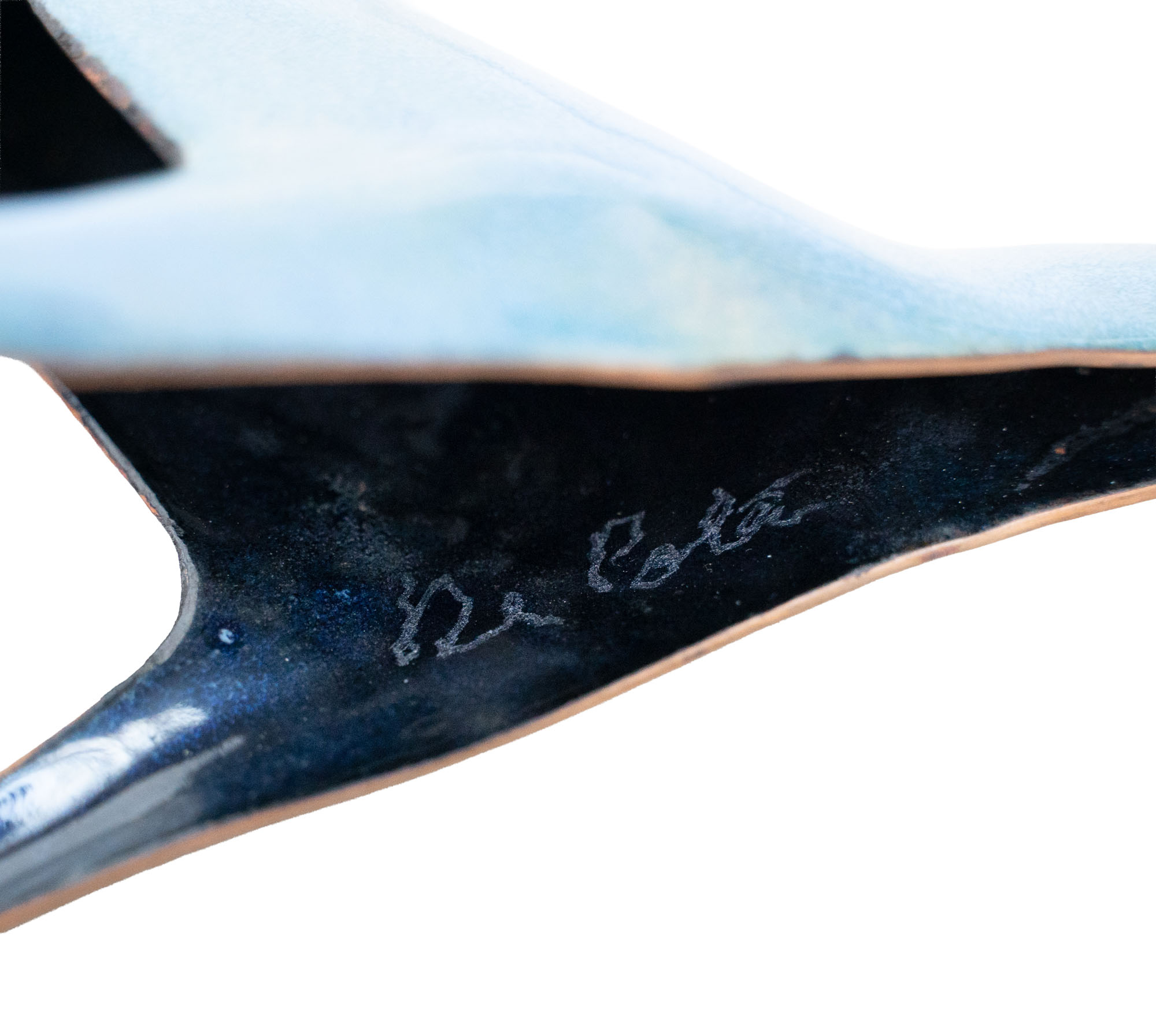 Set in rame smaltato policromo comprendente due uccellini, un pesce e un cavallo, Edizione per il Salone del Mobile Triveneto, 1989-1990, produzione Smalti De Poli, Italia, 1990 circa