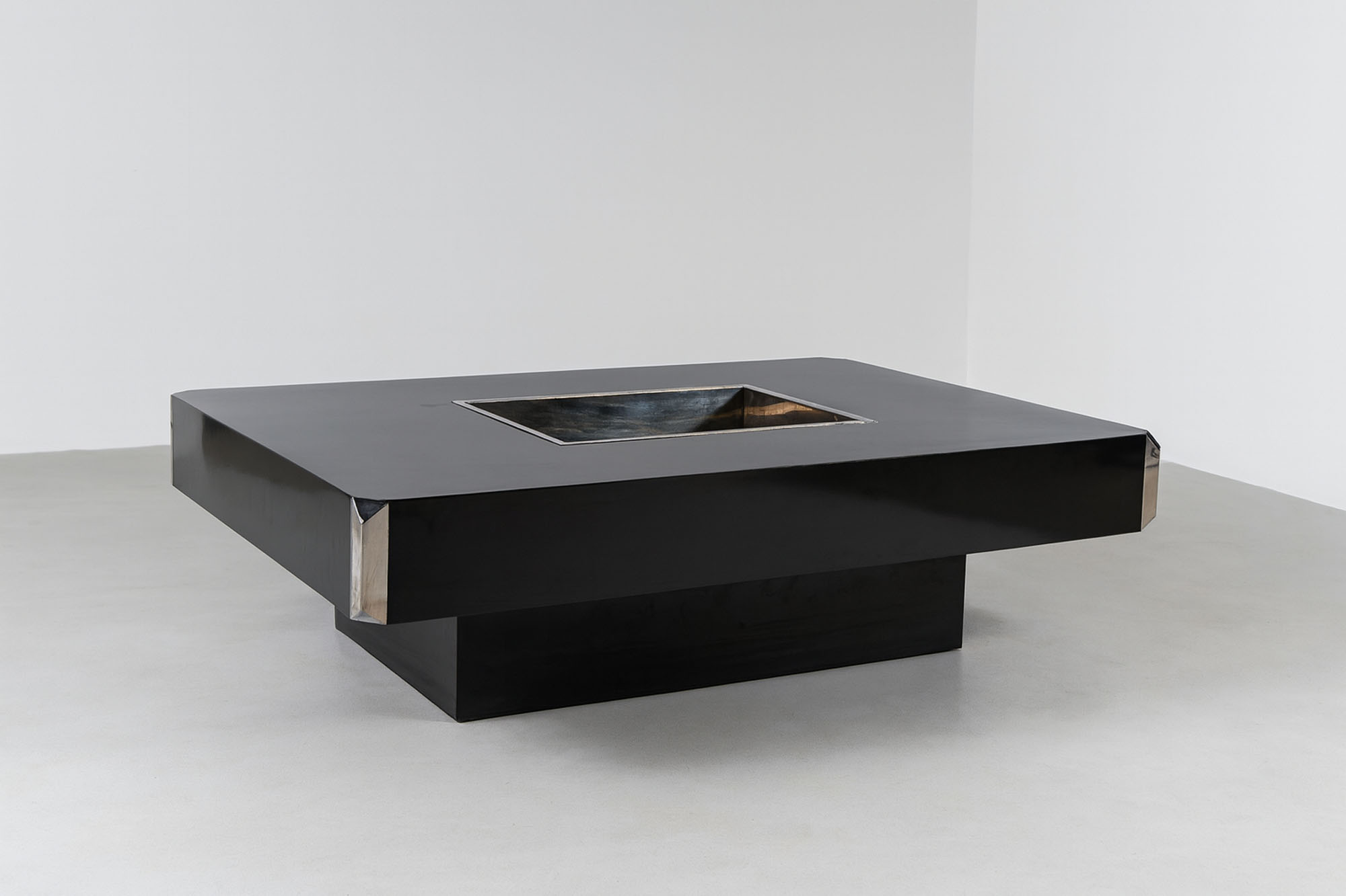 Tavolo basso in legno laccato, acciaio e ottone cromato, produzione Mario Sabot, Italia, 1970-1980