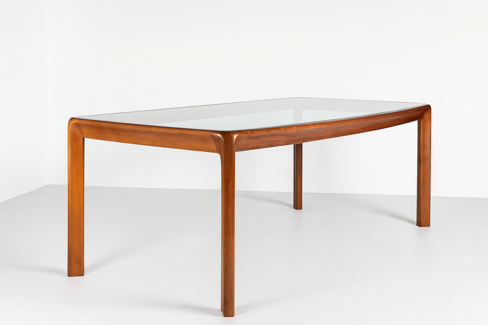 Struttura in noce con piano in vetro, produzione Sorgente del Mobile, Cantù, 1970 circa